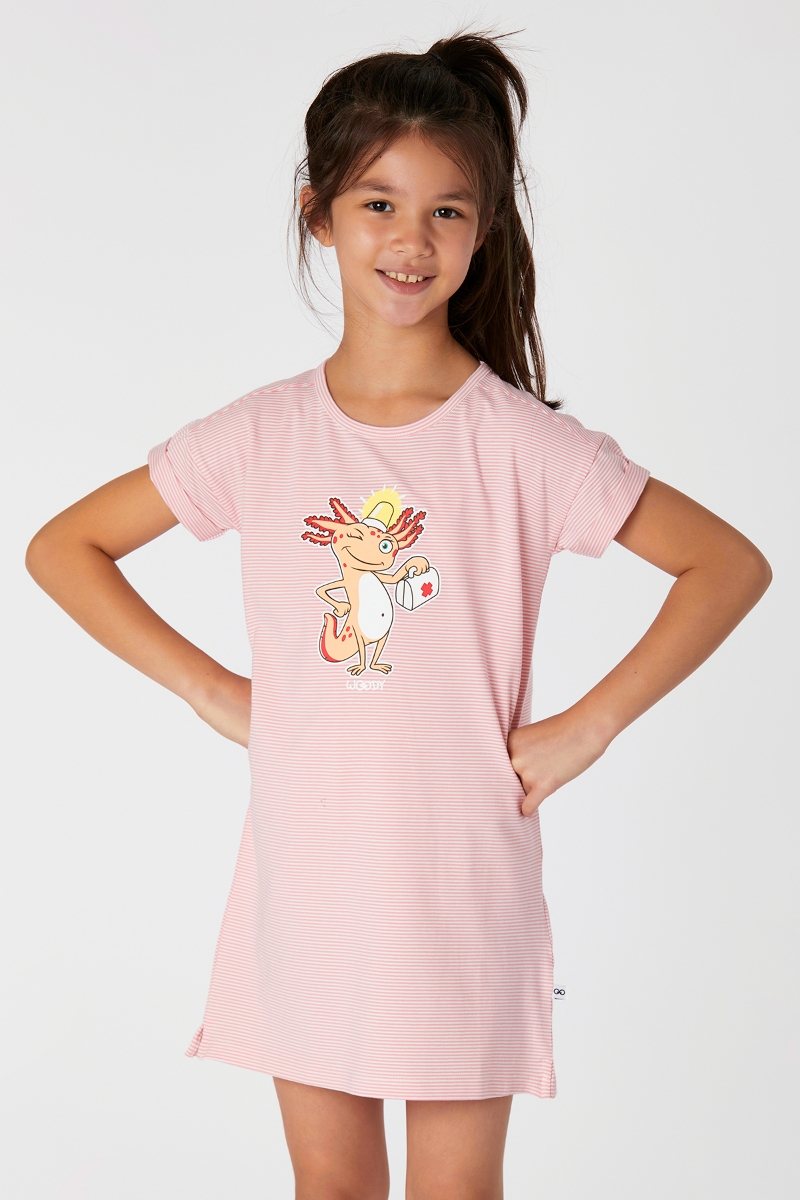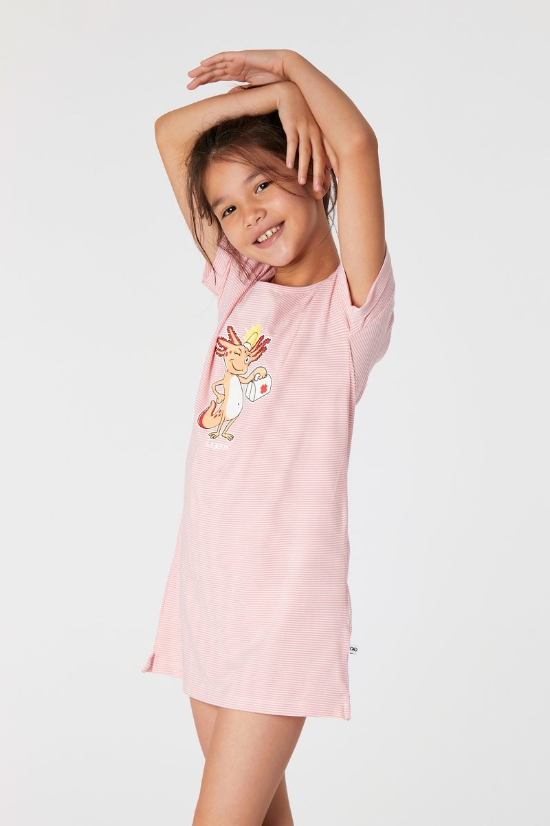 - 10-16 Kız Çocuk Gecelik-Dza - 943-Semender Temalı Çizgili Pembe