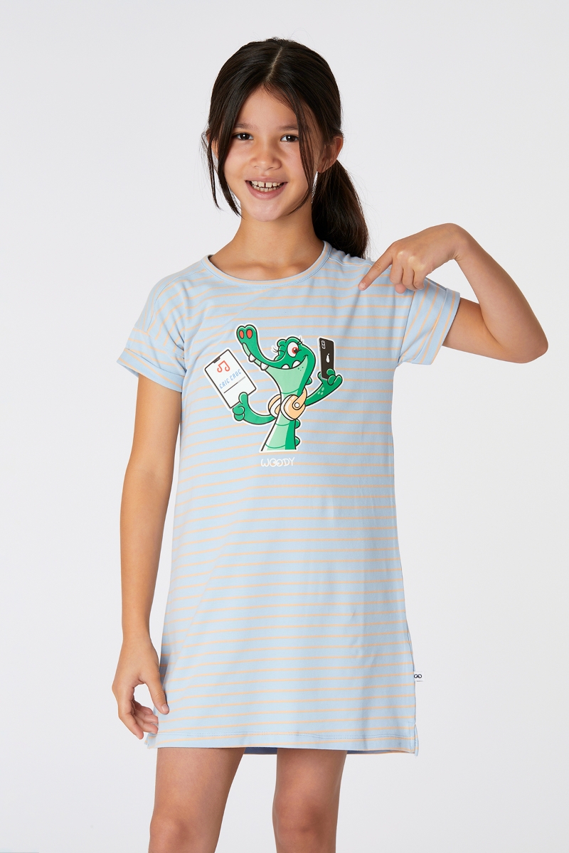 - 10-16 Kız Çocuk Gecelik-Dza - 951-Krokodil Temalı Mavi Çizgili