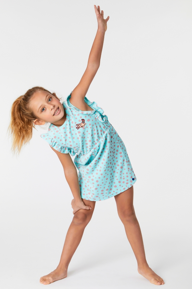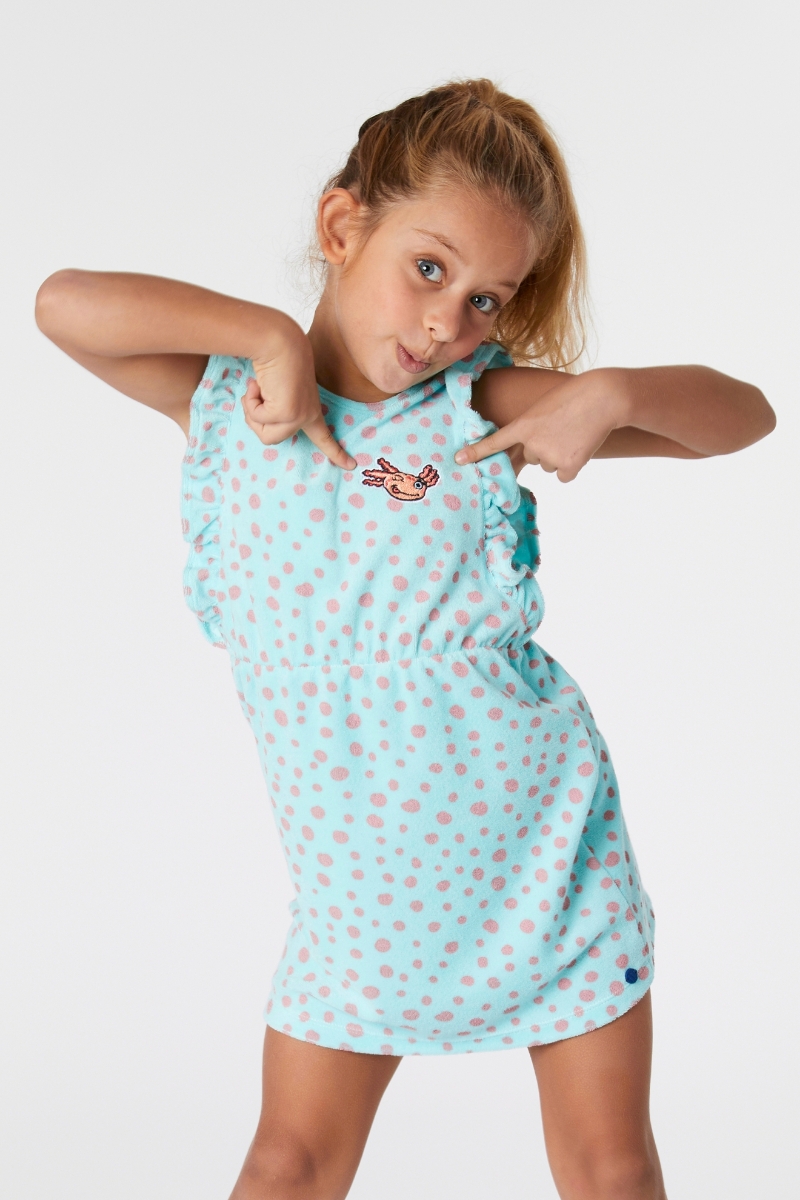 - 10-16 Kız Çocuk Pamuklu Havlu Elbise-Dta - 918-Semender Baskılı Mavi