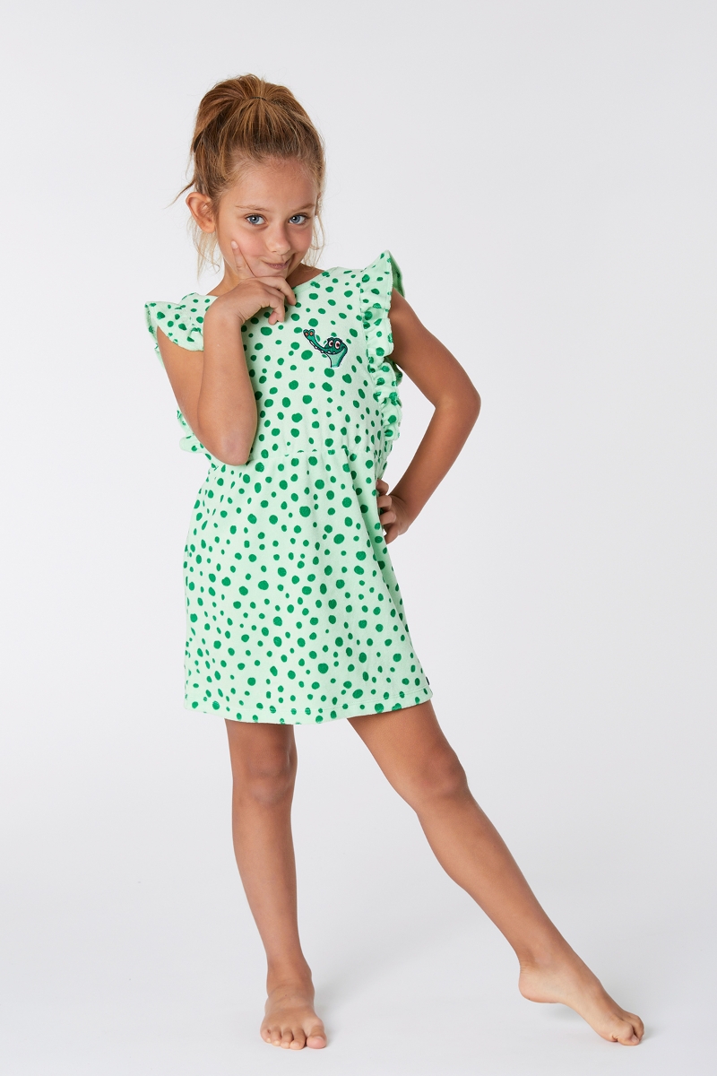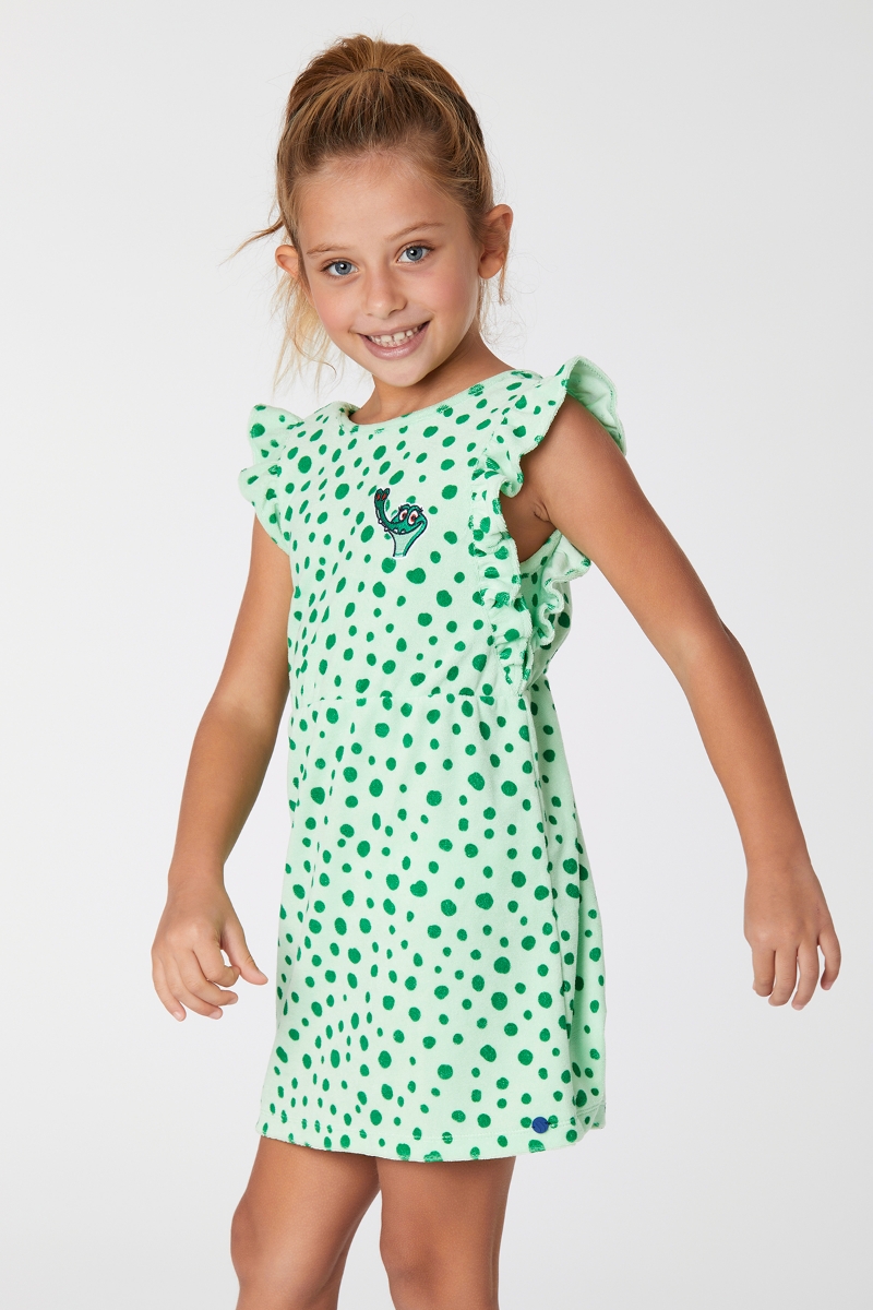 - 10-16 Kız Çocuk Pamuklu Havlu Elbise-Dta - 957-Yeşil Puantiyeli