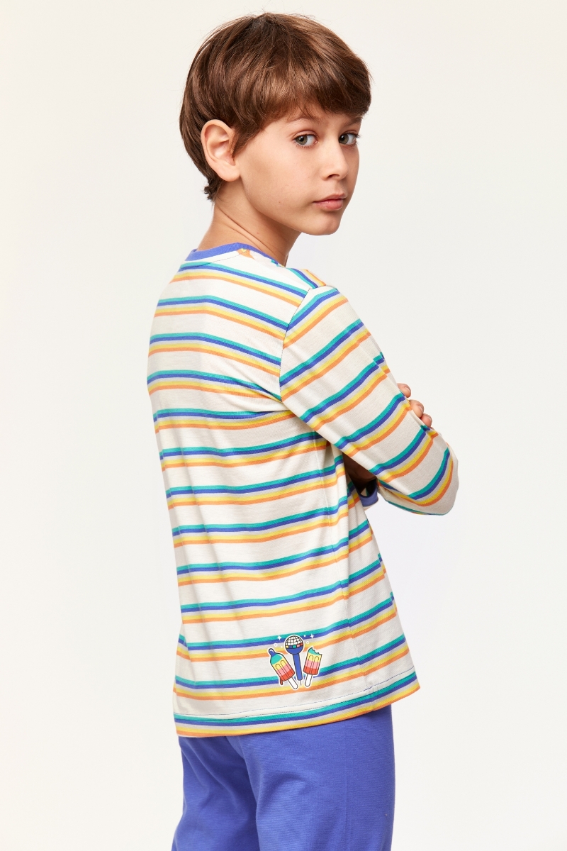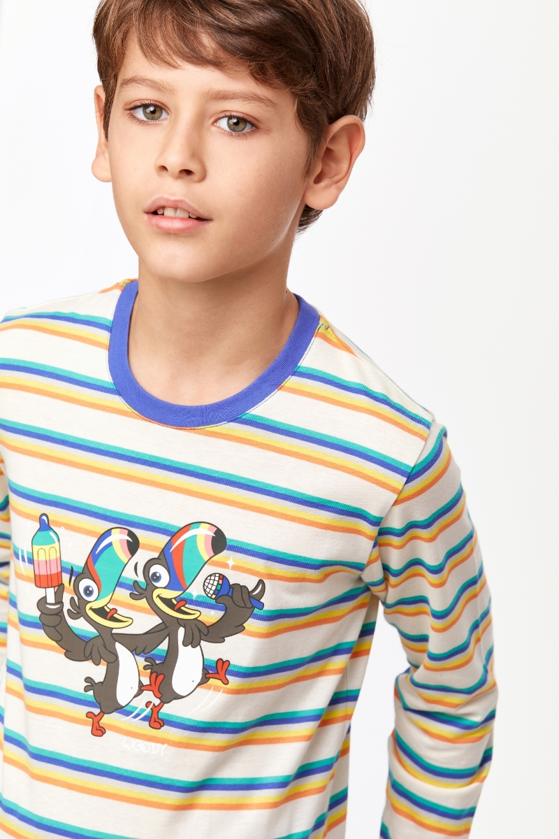 - 10-16 Yaş Erkek Çocuk Pijama-Plc - 908-Tukan Temalı Çizgili Mavi