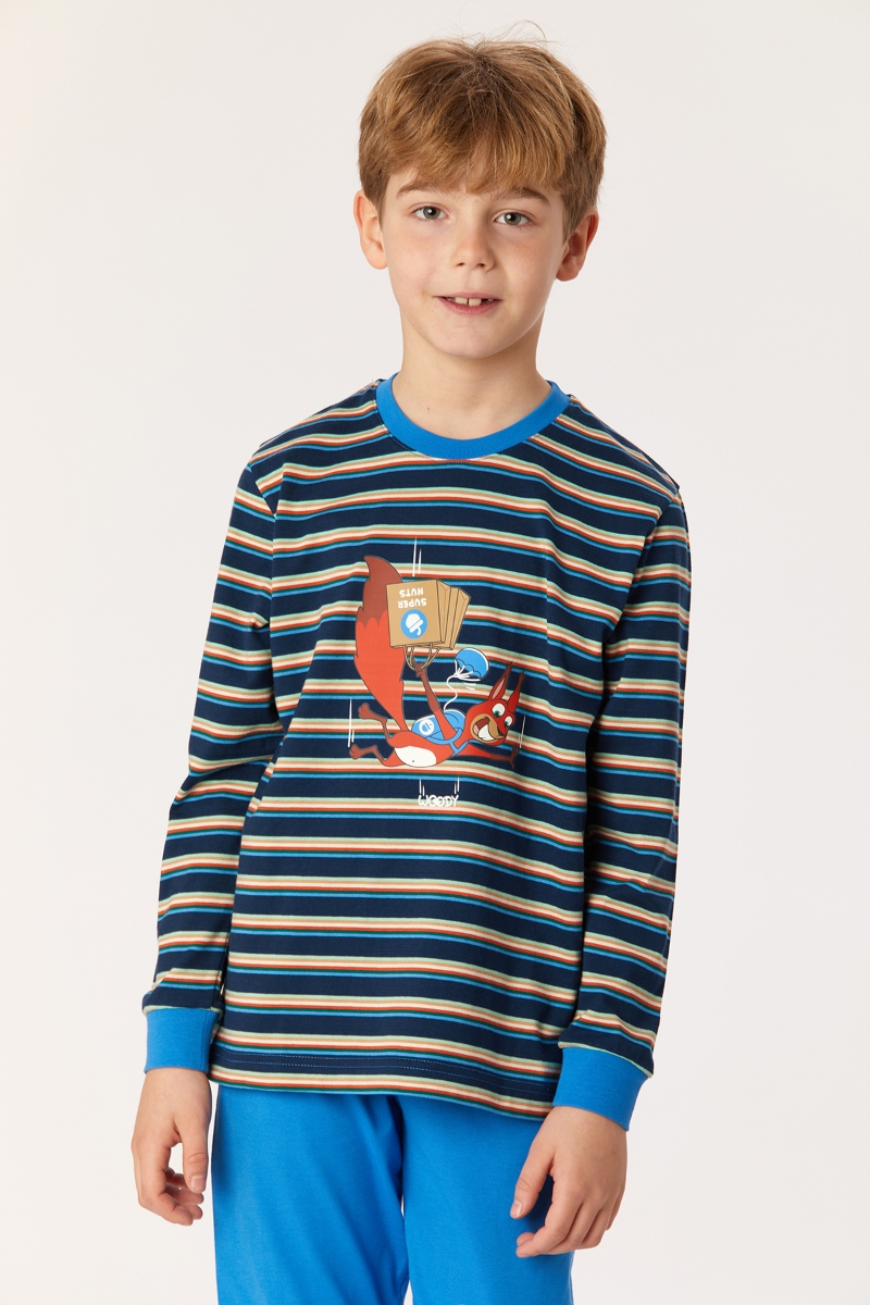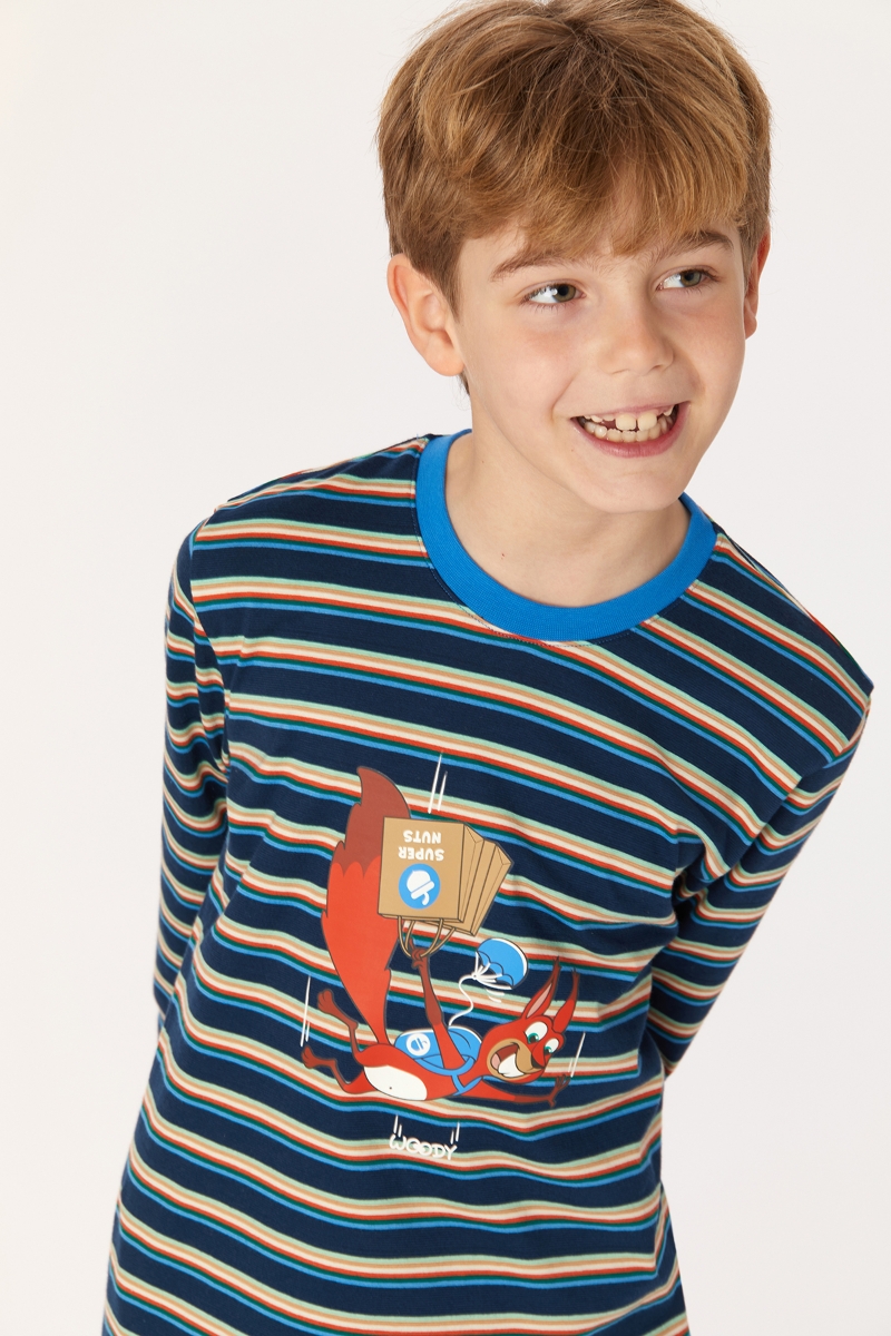 - 10-16 Yaş Erkek Çocuk Pijama-Plc - 911-Sincap Temalı Çok Renkli Lacivert