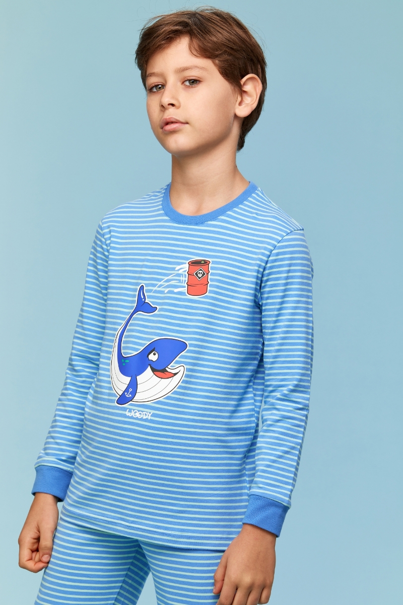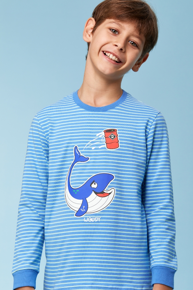 - 10-16 Yaş Erkek Çocuk Pijama-Plc - 913-Balina Temalı Çizgili Mavi
