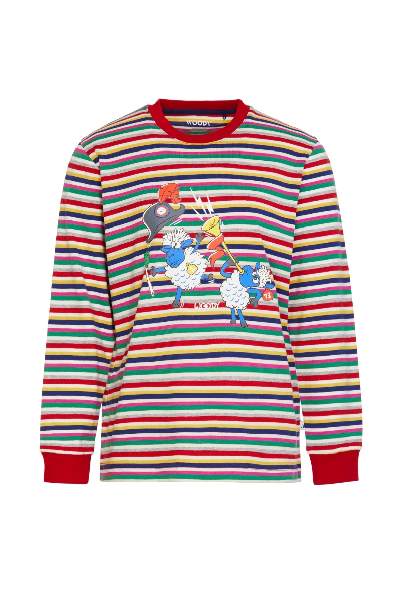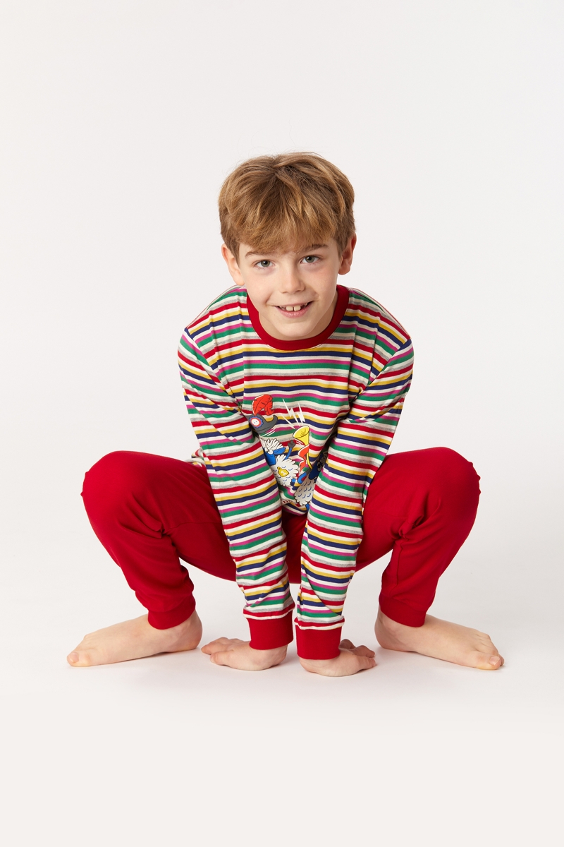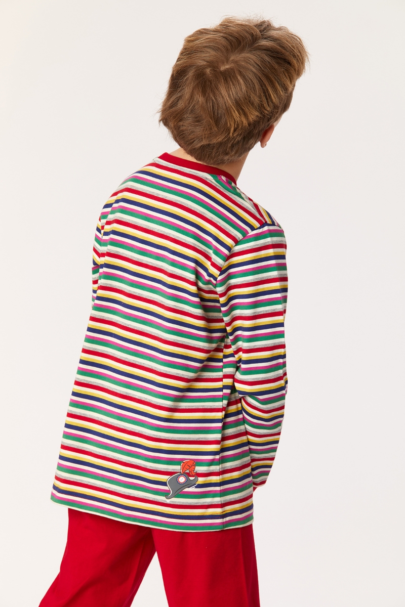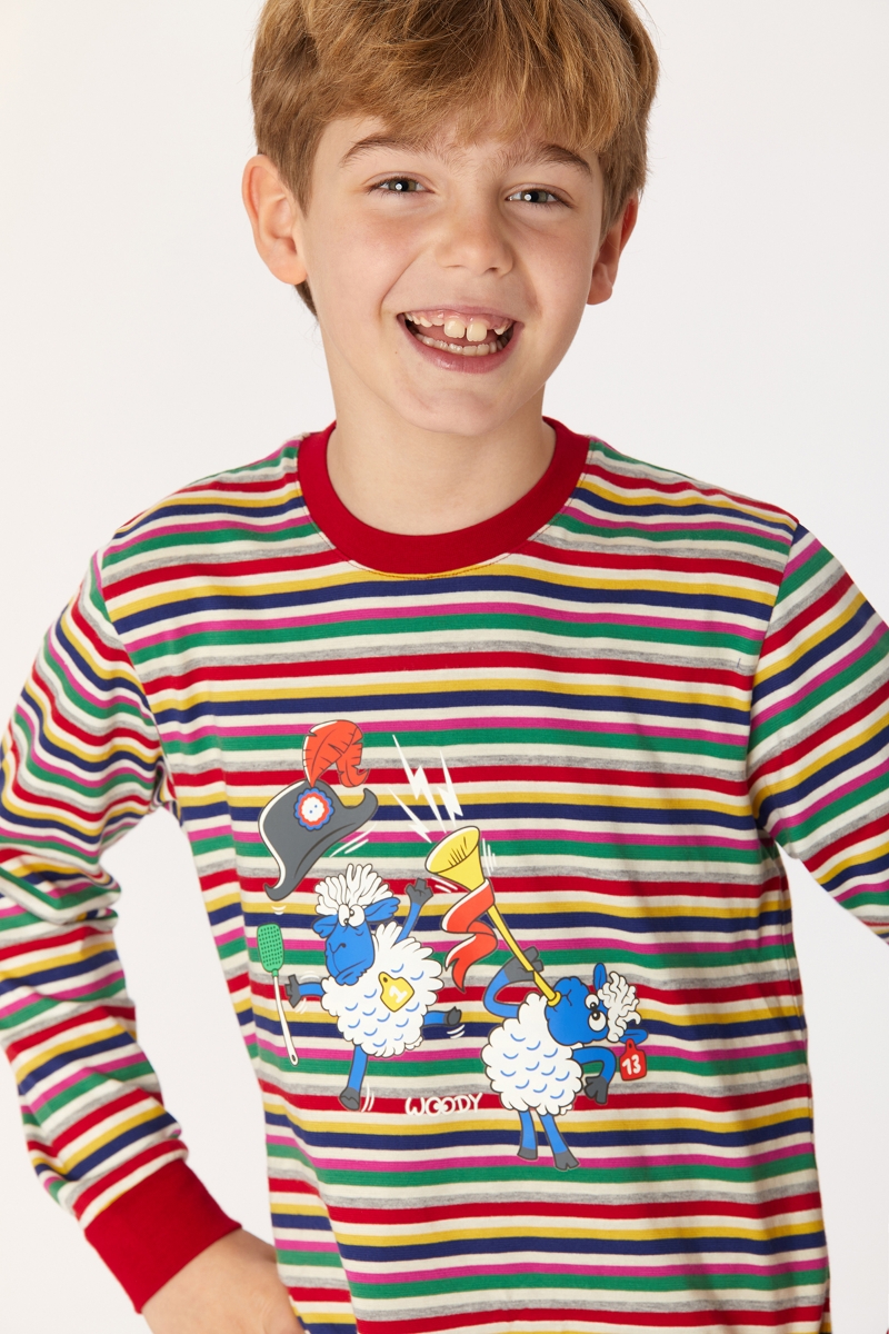 - 10-16 Yaş Erkek Çocuk Pijama-Plc - 921-Koyun Temalı Çok Renkli Çizgili Fuşya