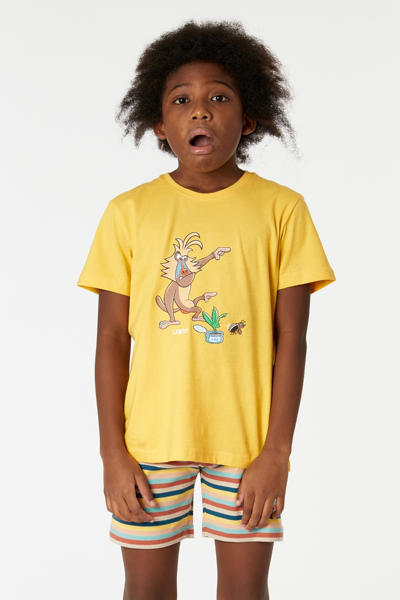 - 10-16 Yaş Erkek Çocuk Pijama-Pss - 614-Limon Sarı