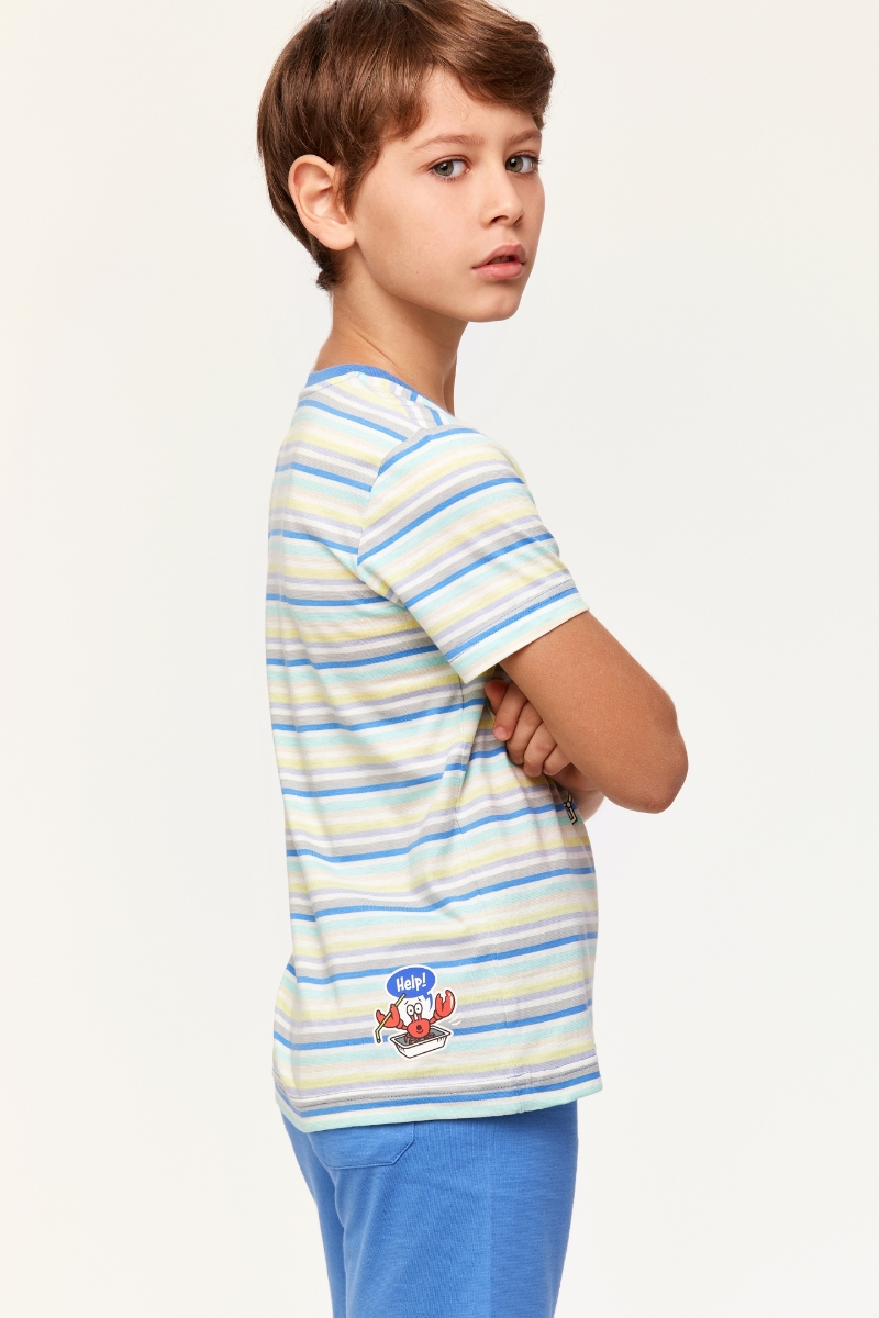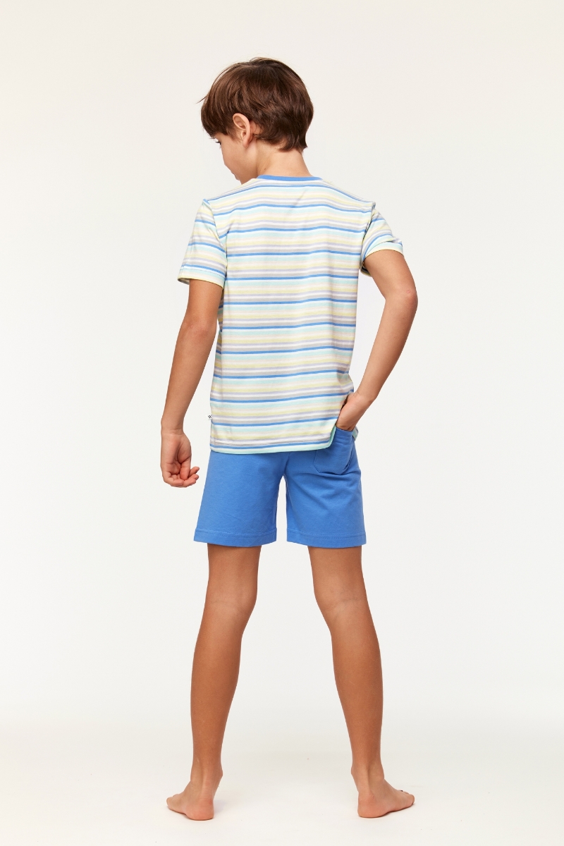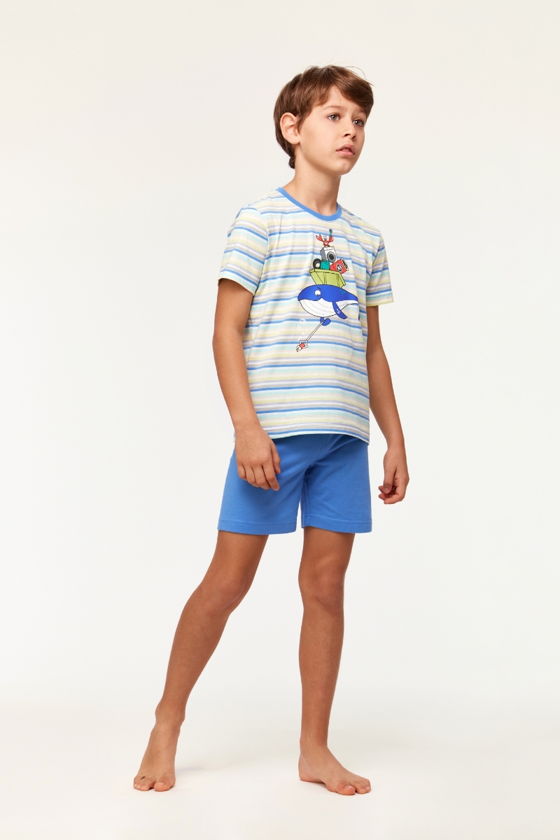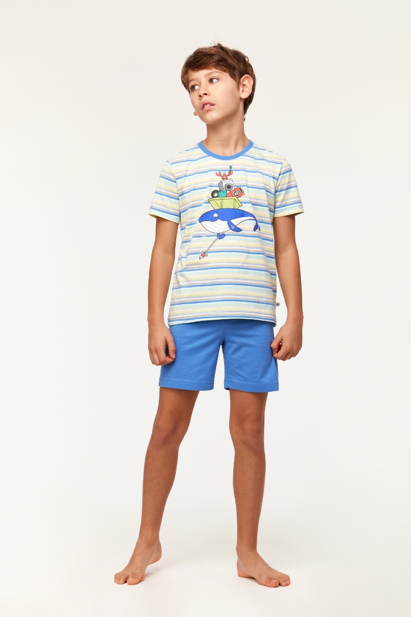 - 10-16 Yaş Erkek Çocuk Pijama-Pss - 904-Balina Temalı Çizgili Mavi