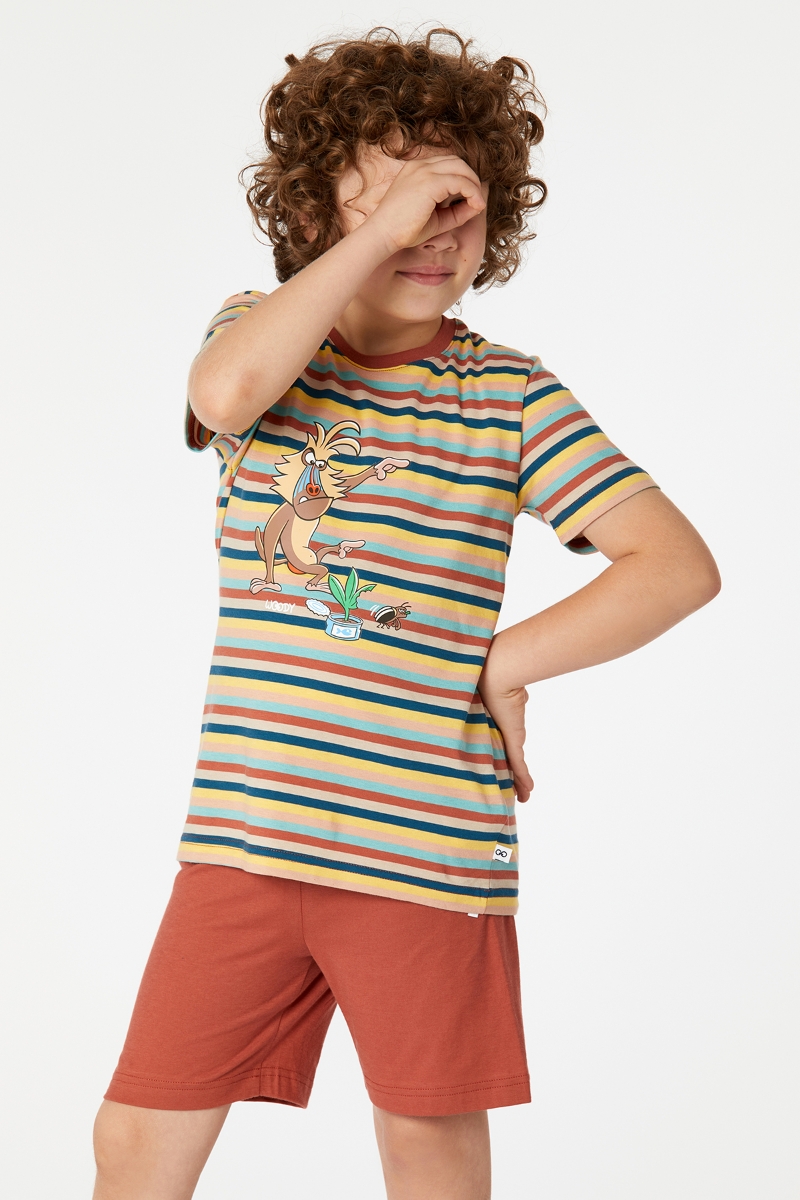 - 10-16 Yaş Erkek Çocuk Pijama-Pss - 929-Mandril Temalı Çizgili