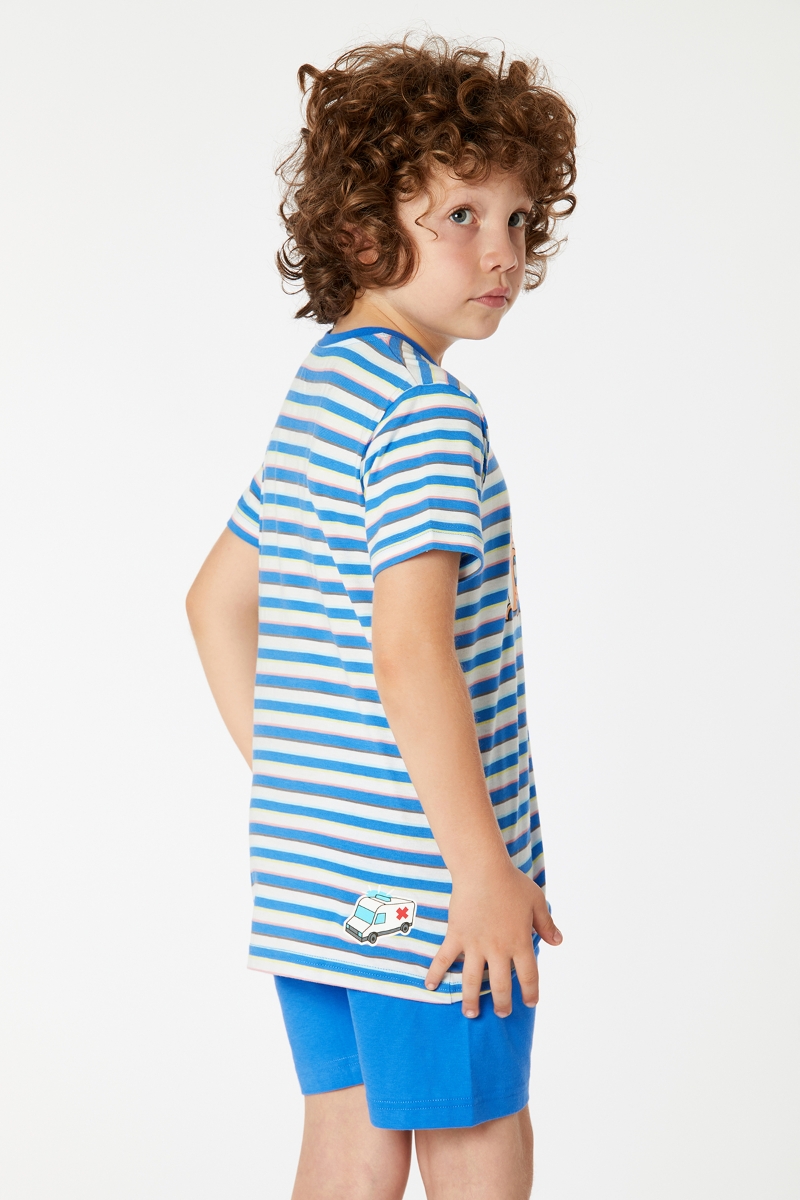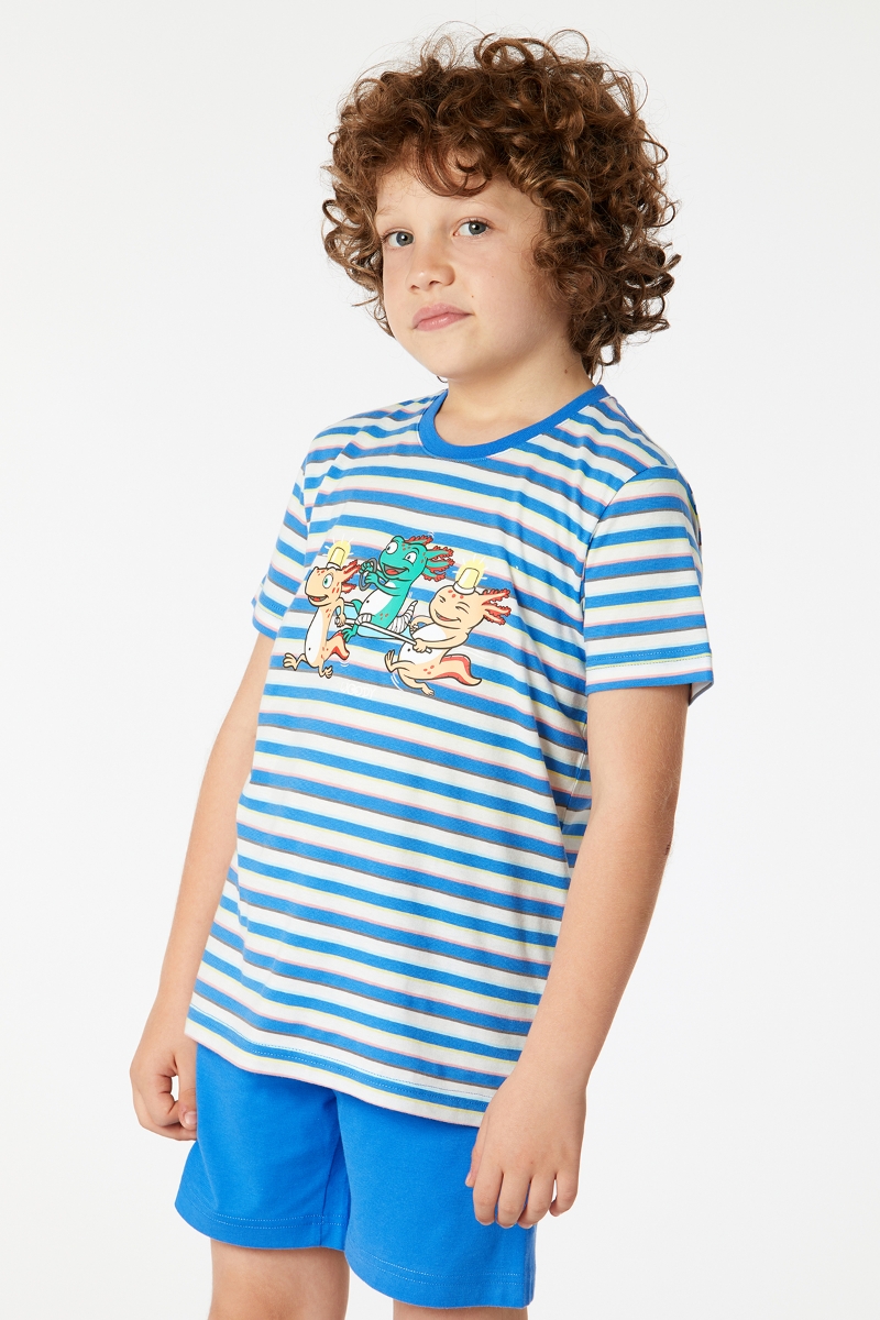 - 10-16 Yaş Erkek Çocuk Pijama-Pss - 987-Semender Temalı Çizgili