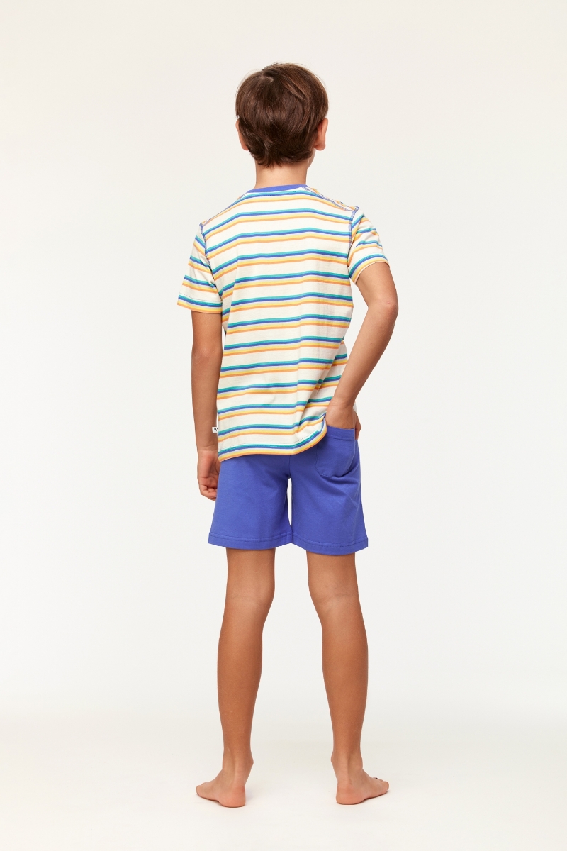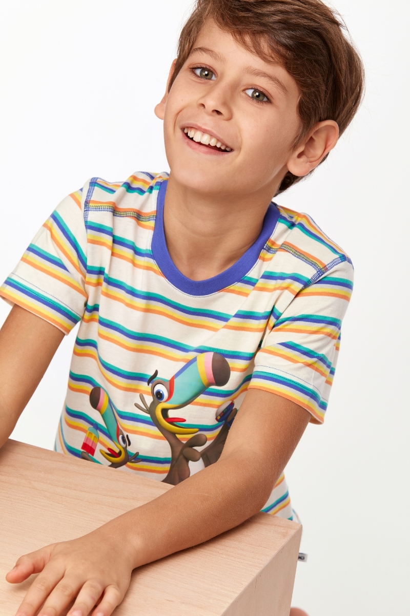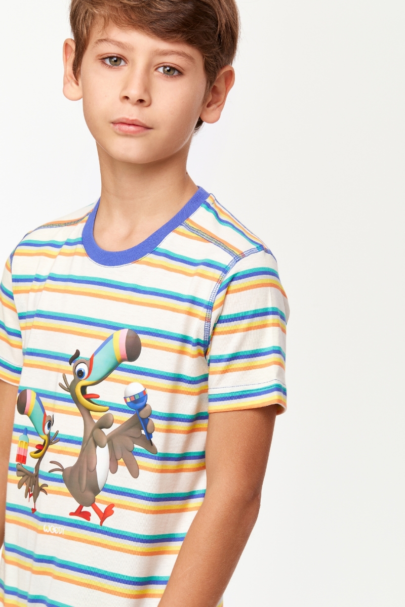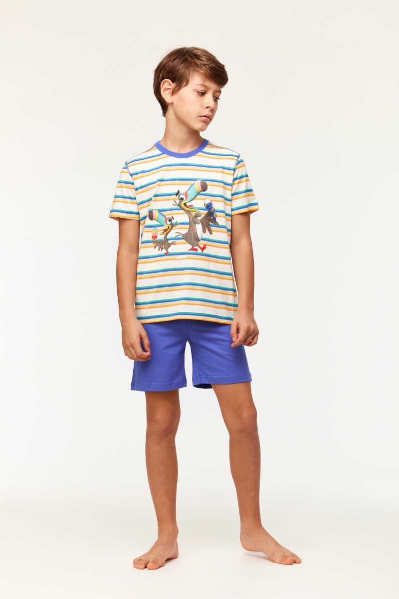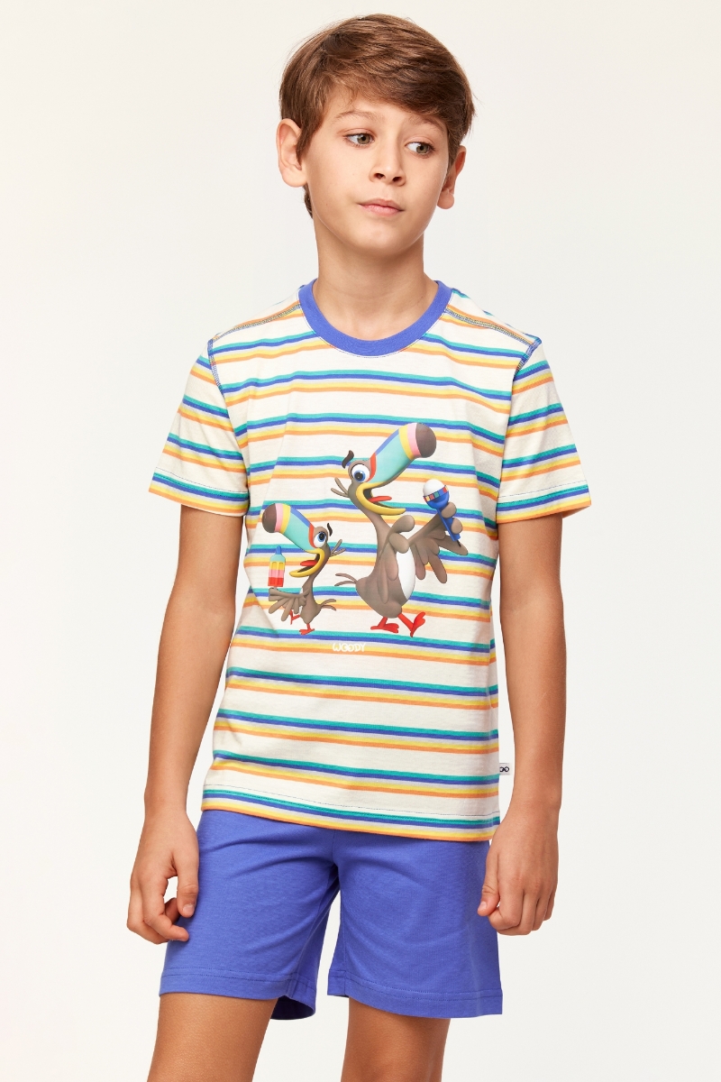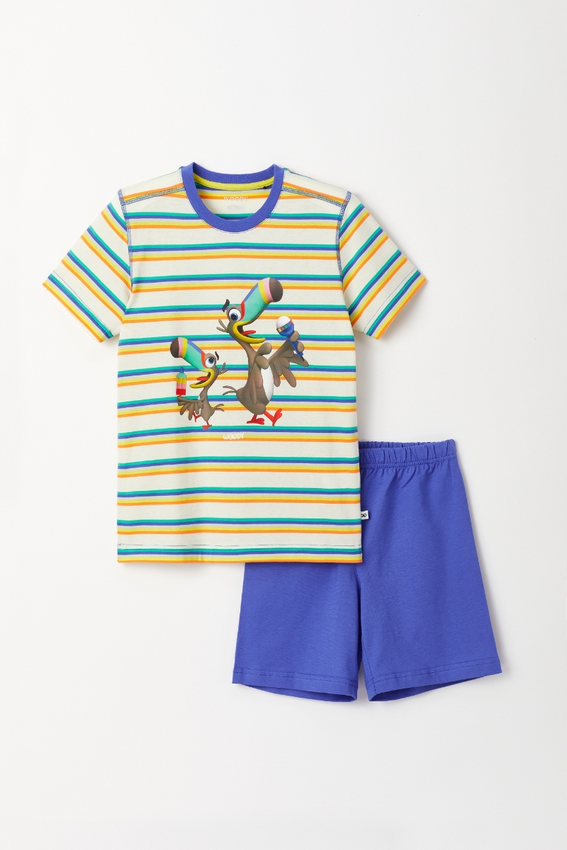 - 10-16 Yaş Erkek Çocuk Pijama-Pus - 908-Tukan Temalı Çizgili Mavi