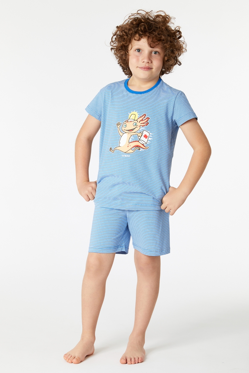 - 10-16 Yaş Erkek Çocuk Pijama-Pza - 980-Semender Temalı Çizgili Beyaz