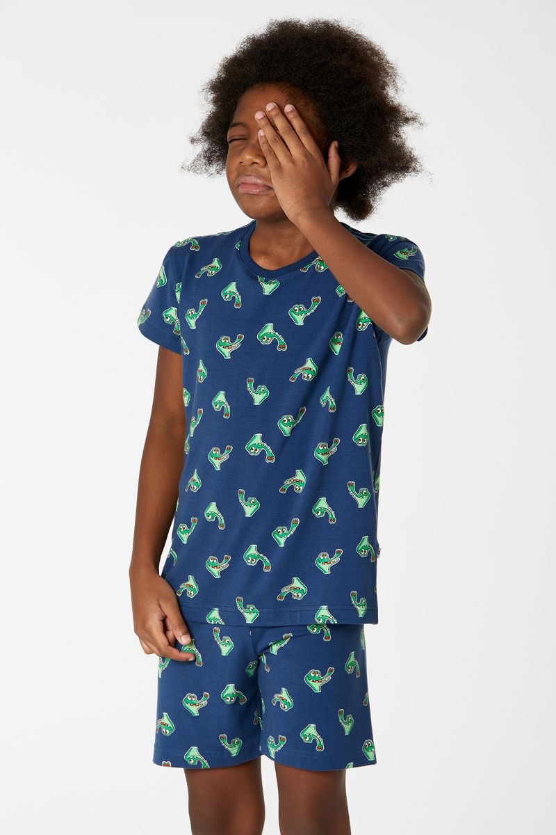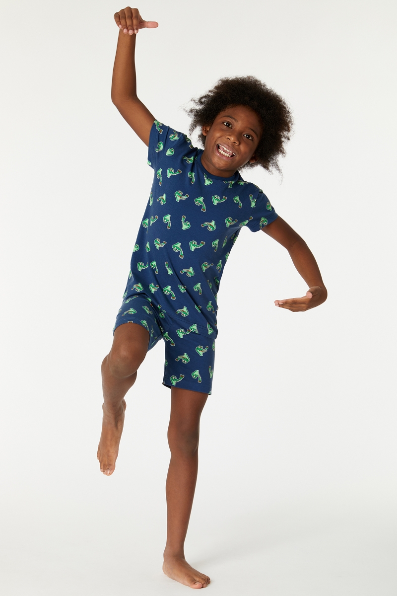 - 10-16 Yaş Erkek Çocuk Pijama-Pza - 998-Krokodil Baskılı Lacivert
