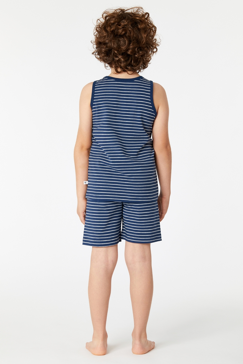 - 10-16 Yaş Erkek Çocuk Pijama-Pzc - 981-Krokodil Temalı Lacivert Çizgili