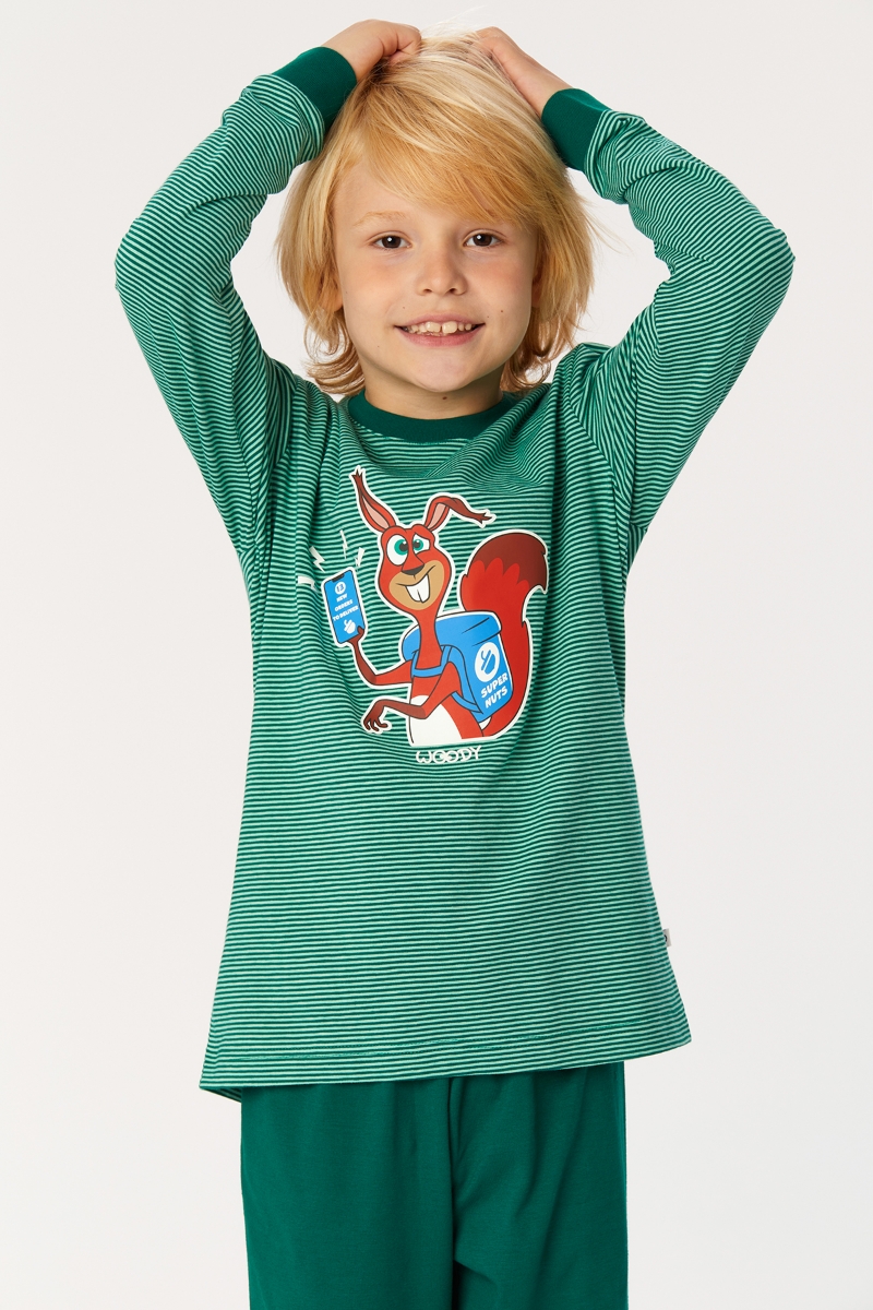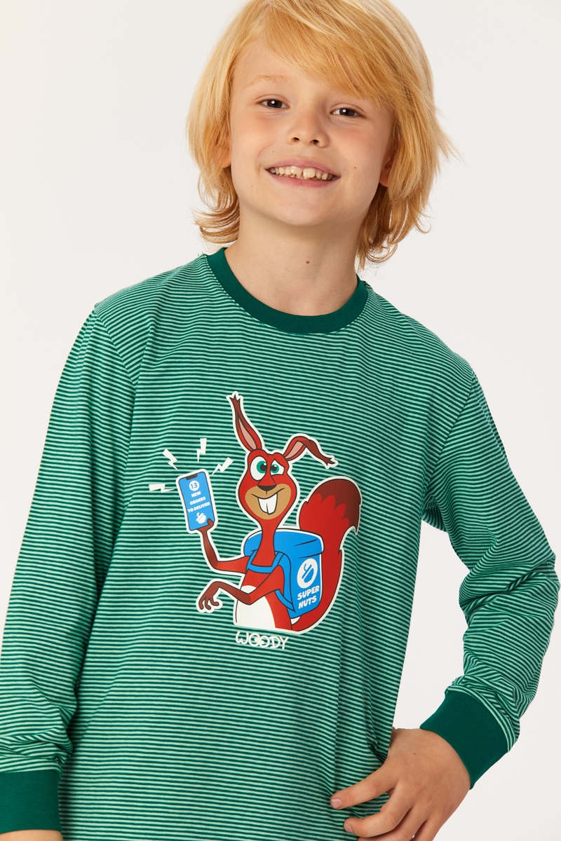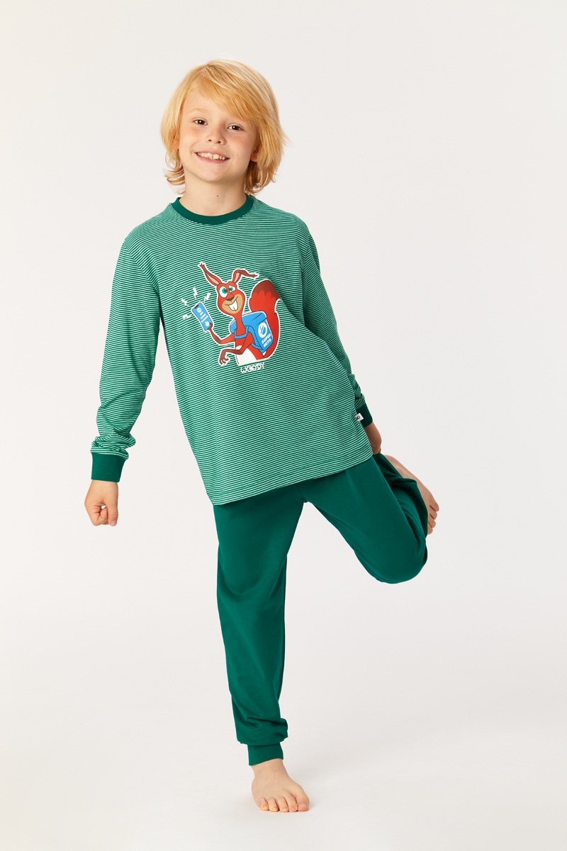 - 10-16 Yaş Erkek Çocuk Pijama-Pzl - 915-Sincap Temalı Çizgili Yeşil