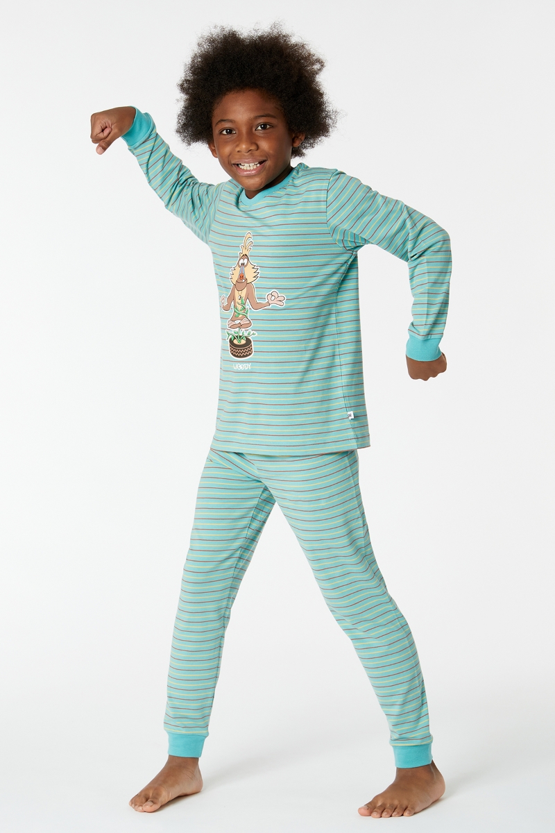 - 10-16 Yaş Erkek Çocuk Pijama-Pzl - 978-Mandril Temalı Çizgili Yeşil
