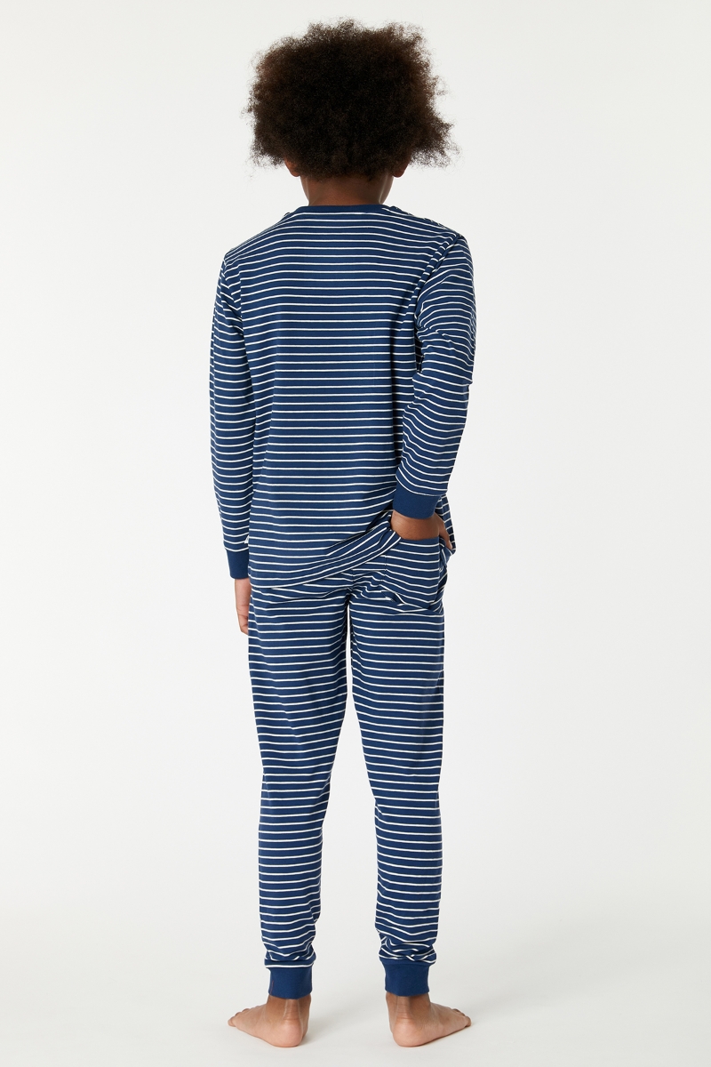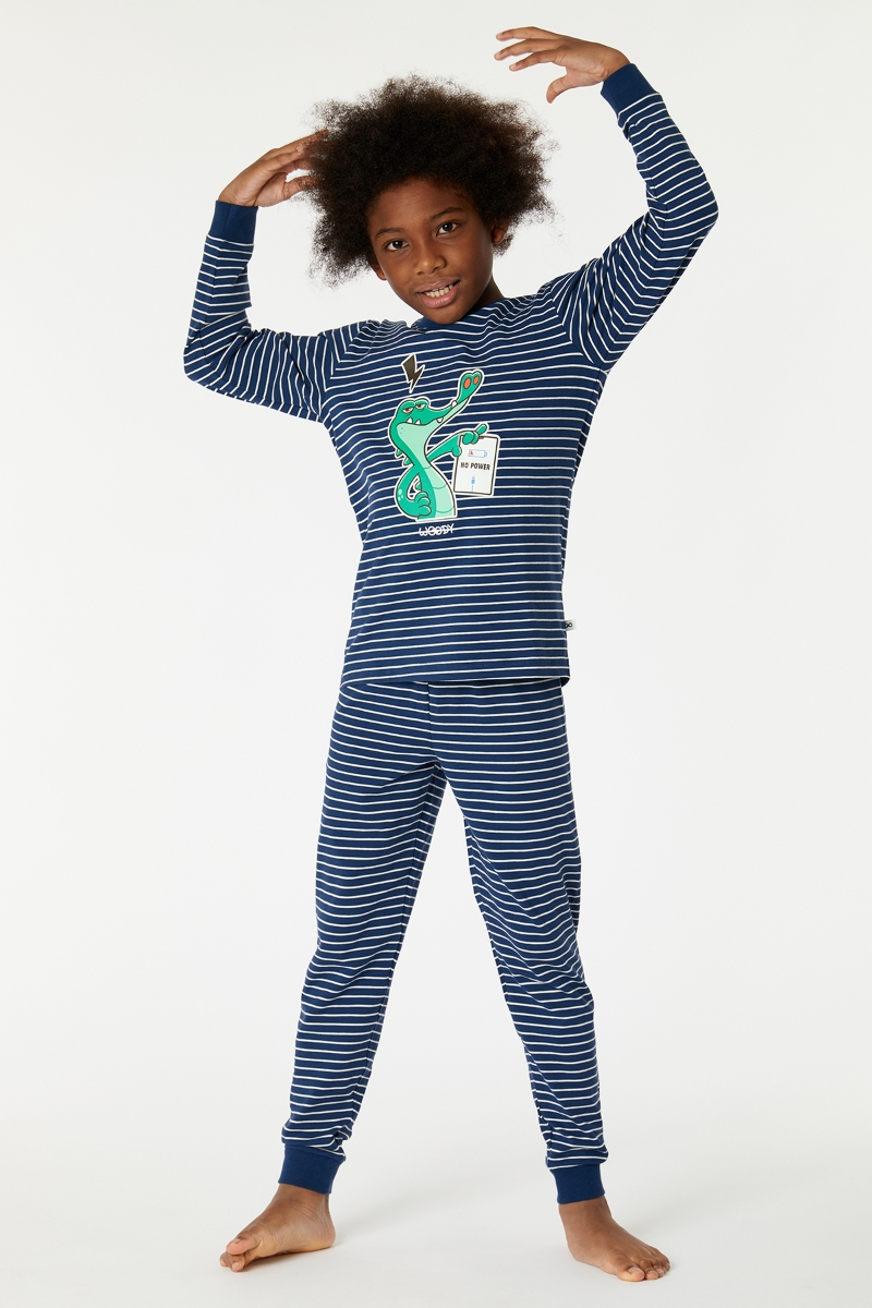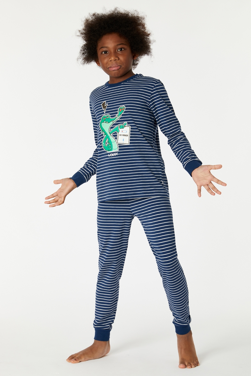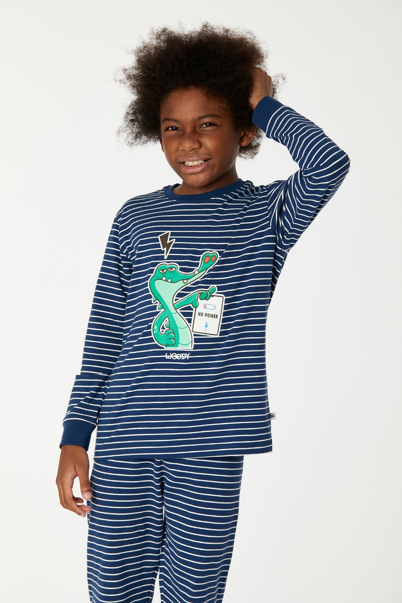 - 10-16 Yaş Erkek Çocuk Pijama-Pzl - 981-Krokodil Temalı Lacivert Çizgili