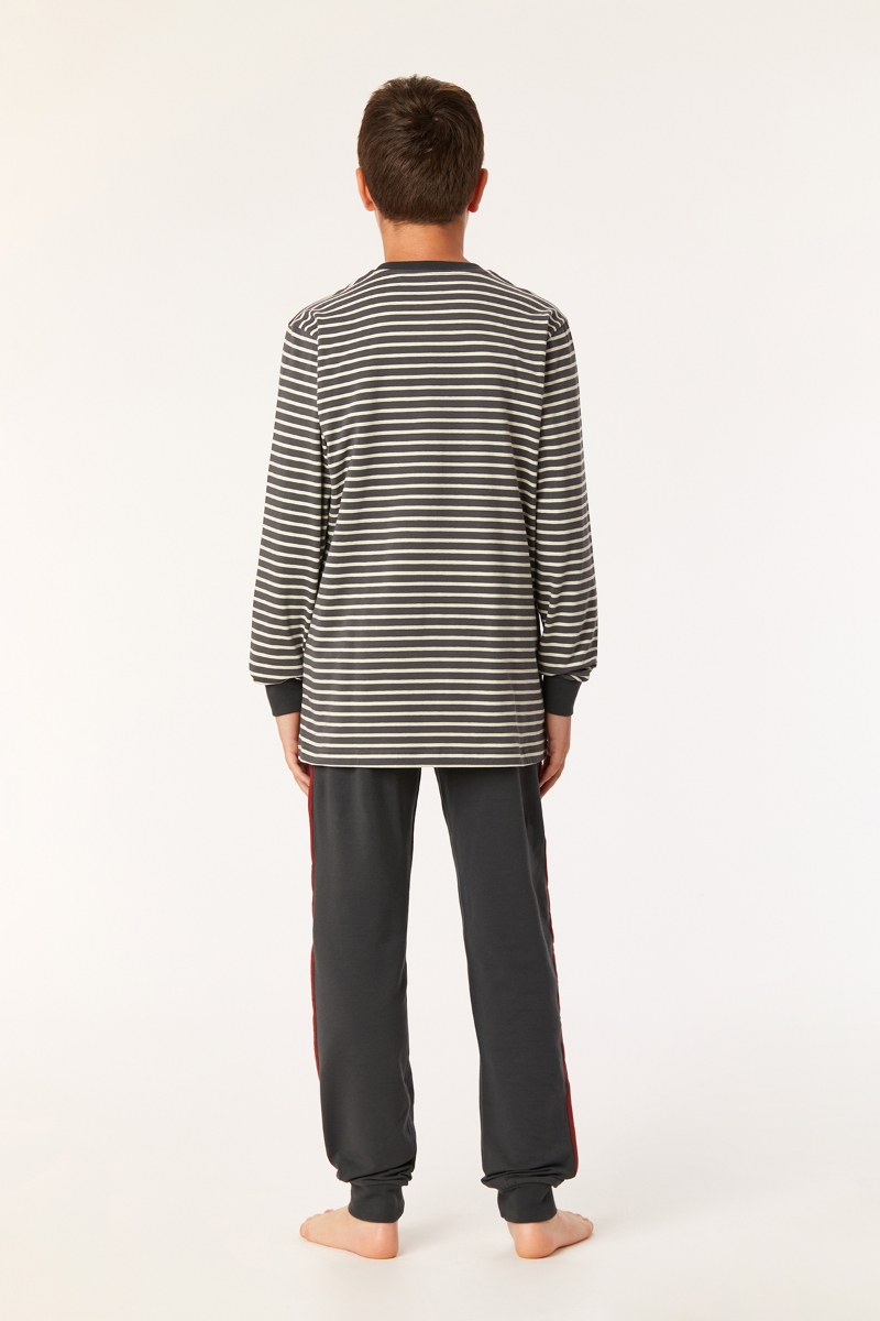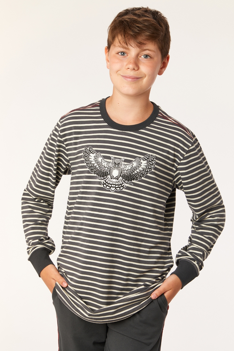 - 10-16 Yaş Erkek Çocuk Pijama-Qtr - 935-Baykuş Temalı Çizgili Antrasit