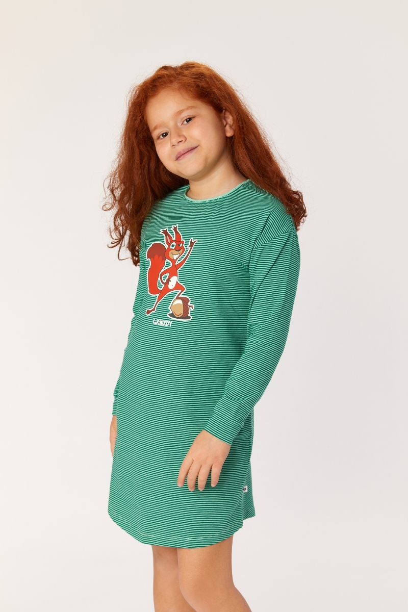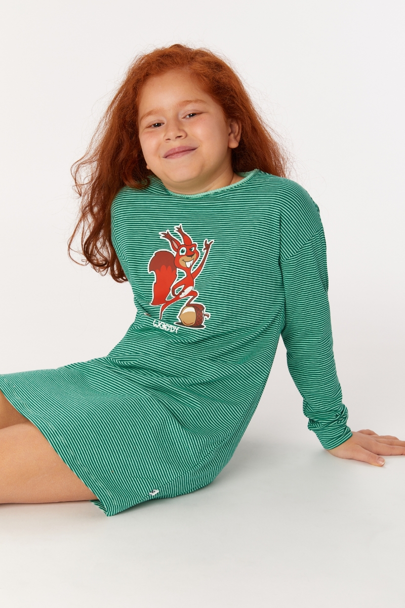 - 10-16 Yaş Kız Çocuk Gecelik-Dzf - 915-Sincap Temalı Çizgili Yeşil
