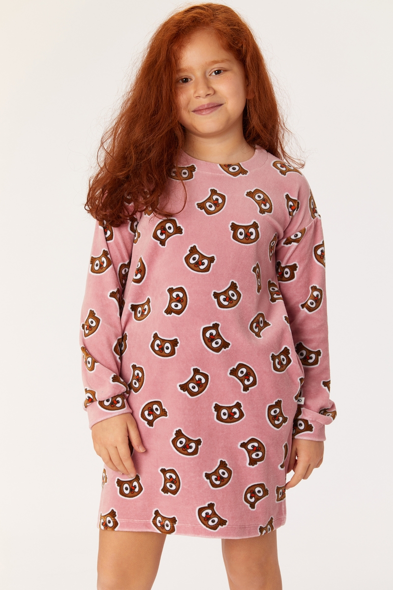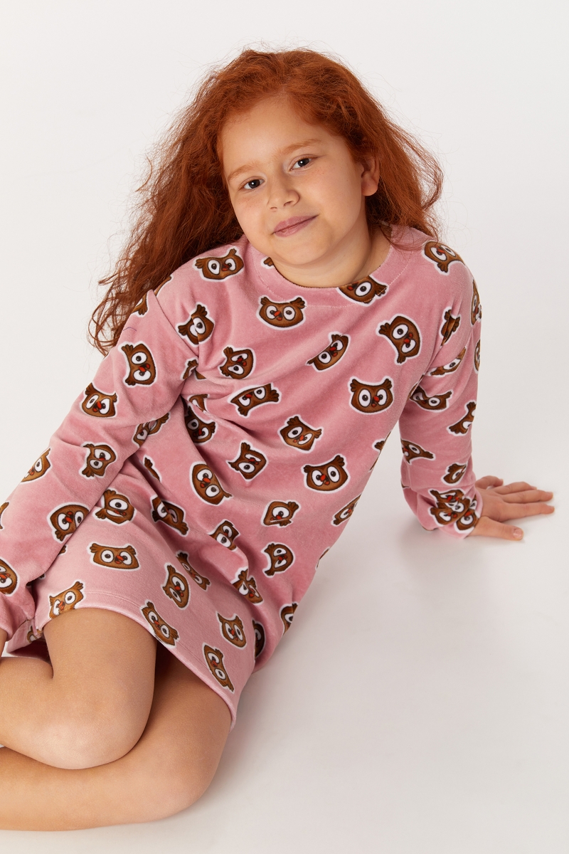 - 10-16 Yaş Kız Çocuk Gecelik-Nıl - 913-Baykuş Baskılı Vizon Pembe