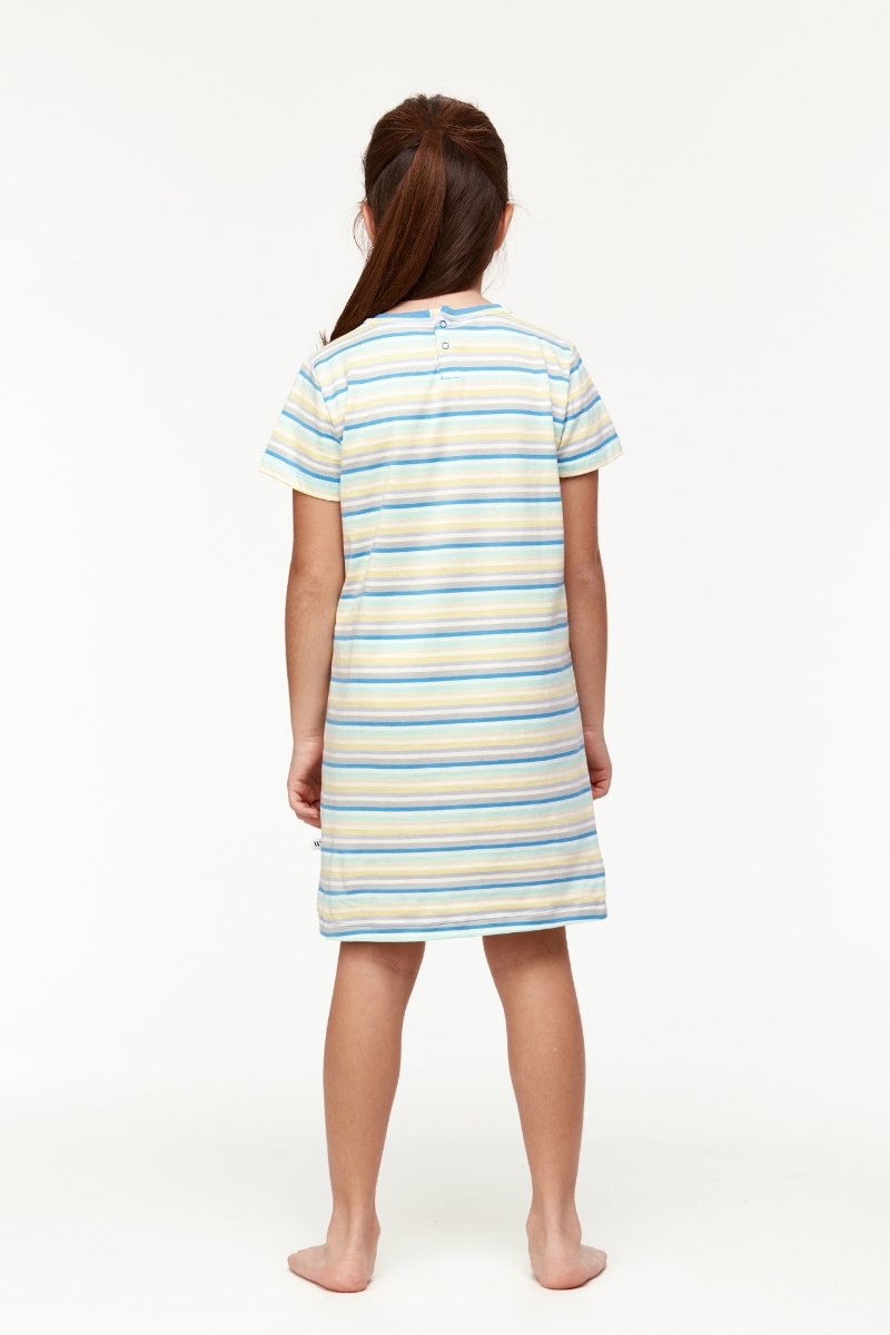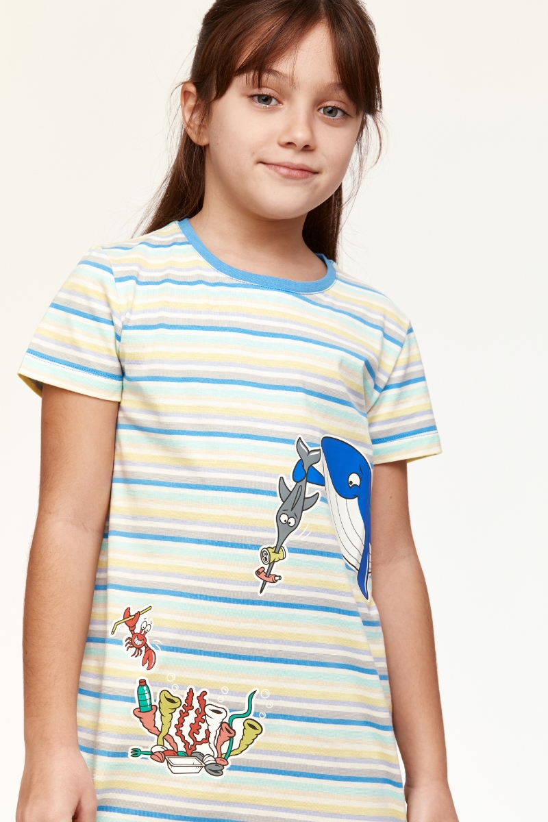 - 10-16 Yaş Kız Çocuk Gecelik-Tsl - 904-Balina Temalı Çizgili Mavi