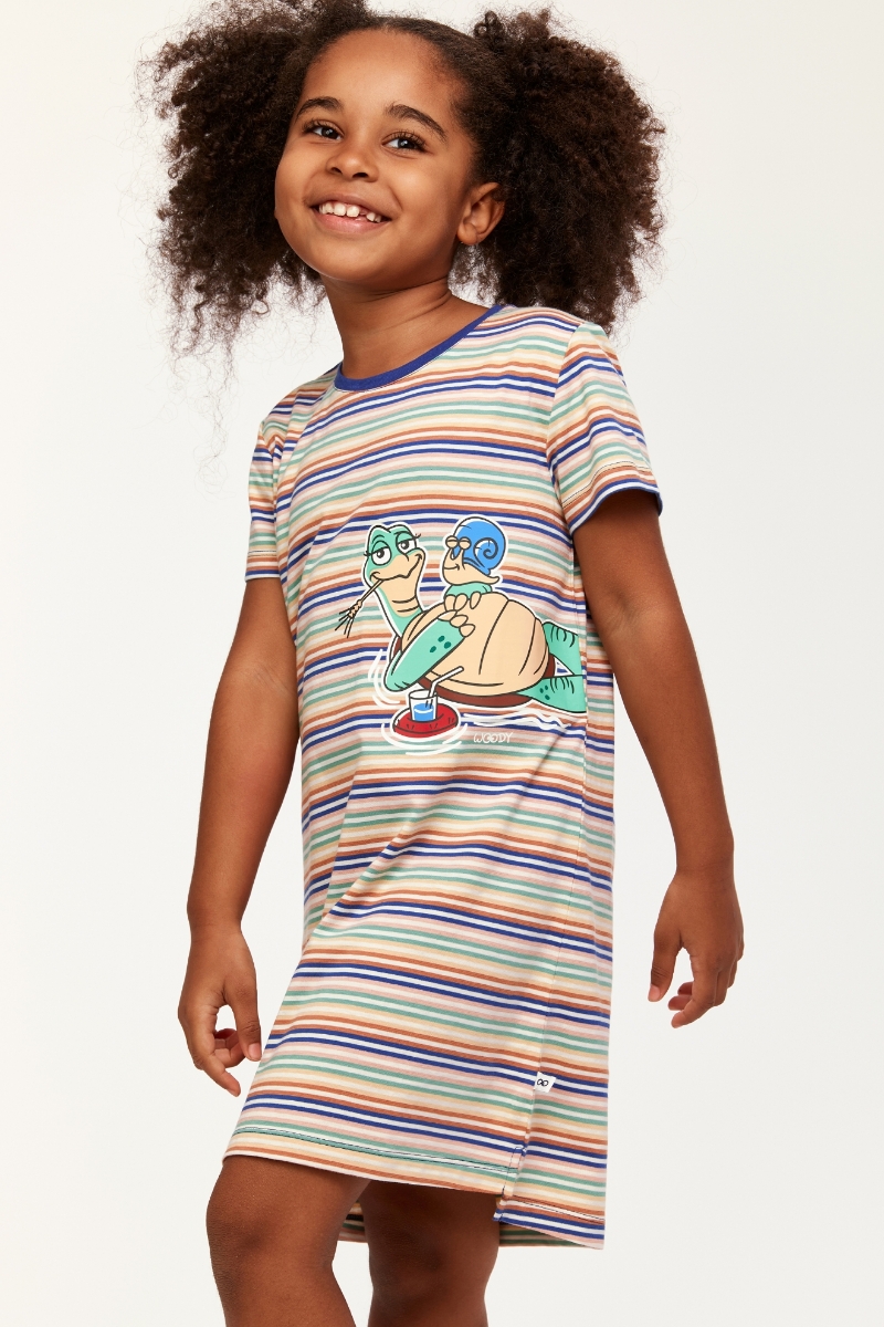 - 10-16 Yaş Kız Çocuk Gecelik-Tsl - 906-Kaplumbağa Temalı Çizgili Turuncu