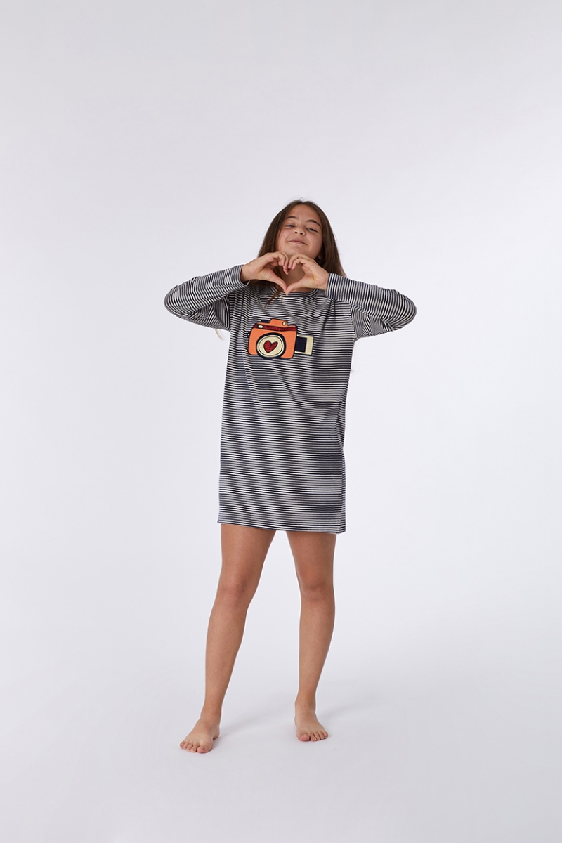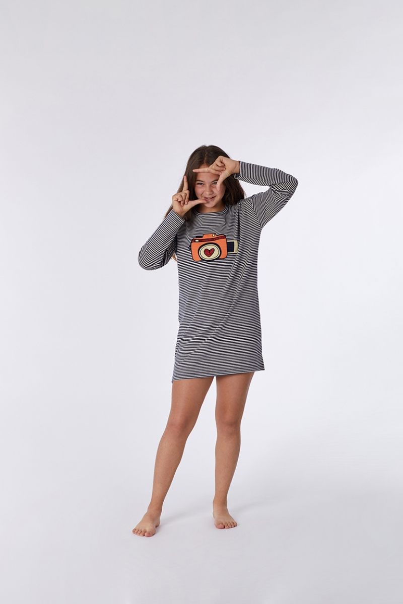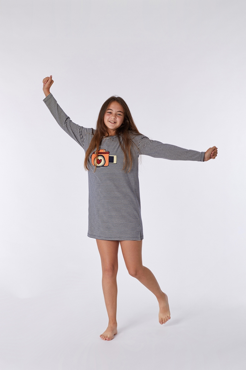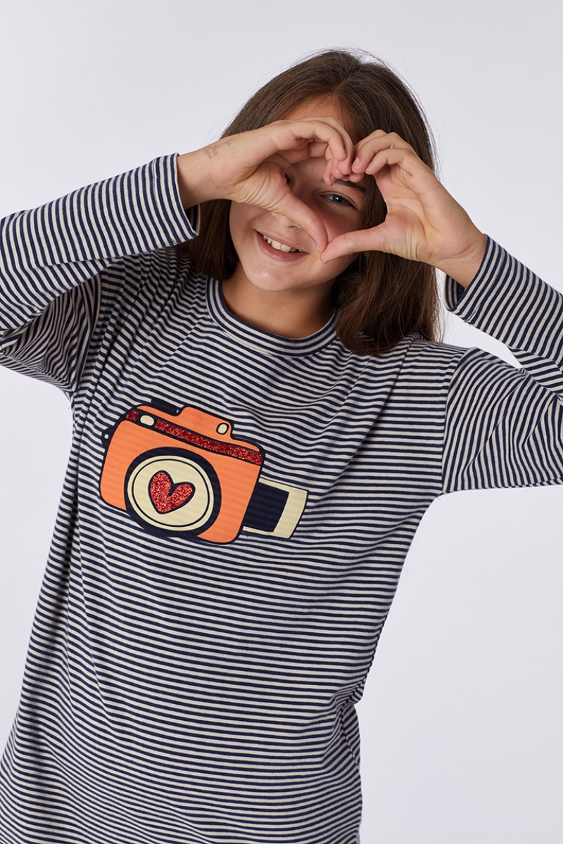 - 10-16 Yaş Kız Çocuk Gecelik-Yda - 916-Boğa Temalı Çizgili Lacivert