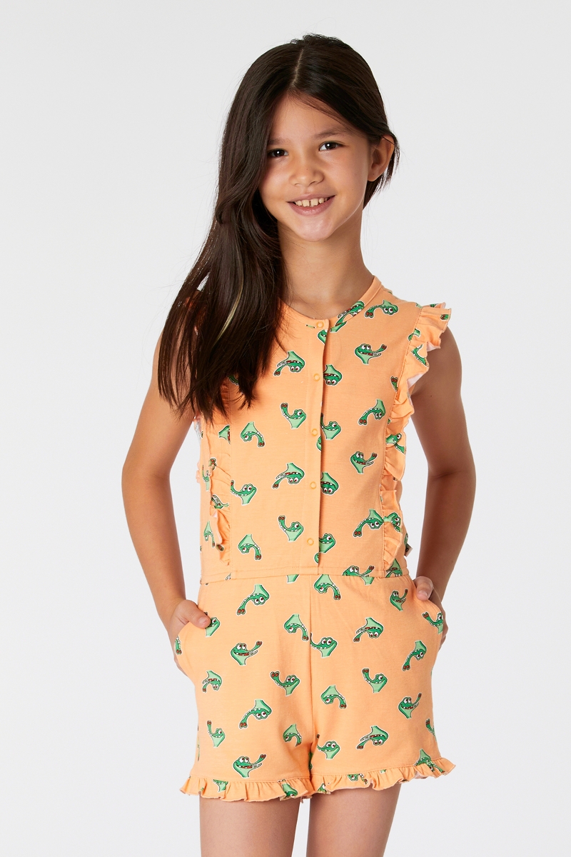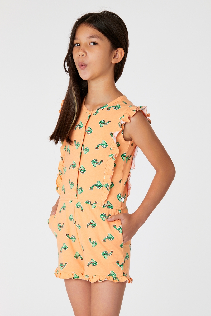 10-16 Yaş Kız Çocuk Pamuklu Tulum-Ond - 954-Krokodil Baskılı Turuncu