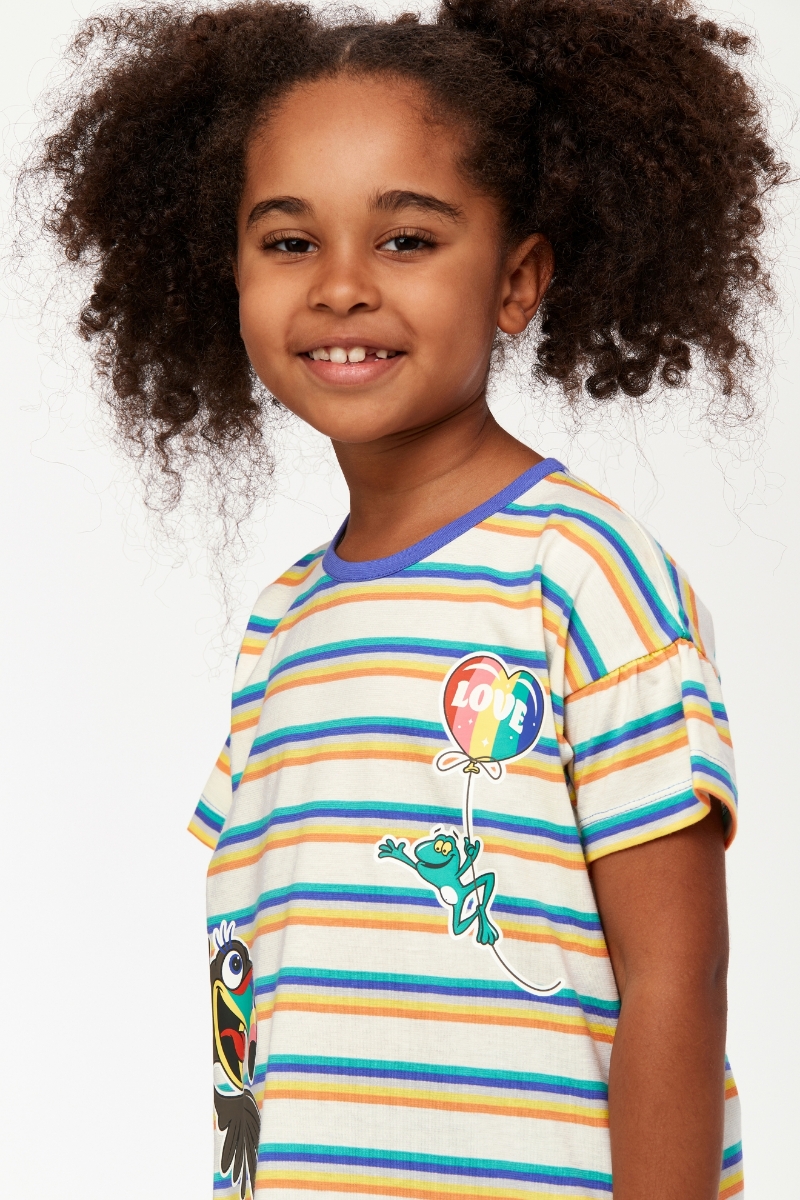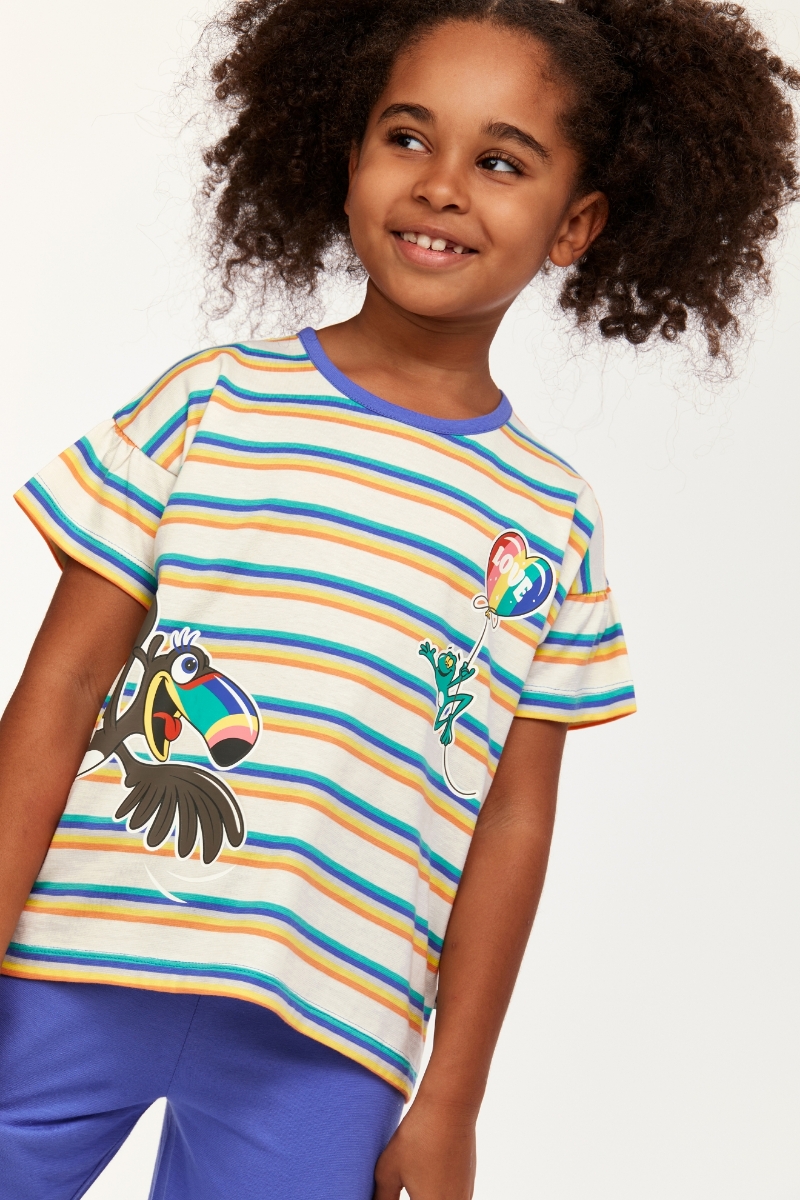 - 10-16 Yaş Kız Çocuk Pijama-Bsk - 908-Tukan Temalı Çizgili Mavi