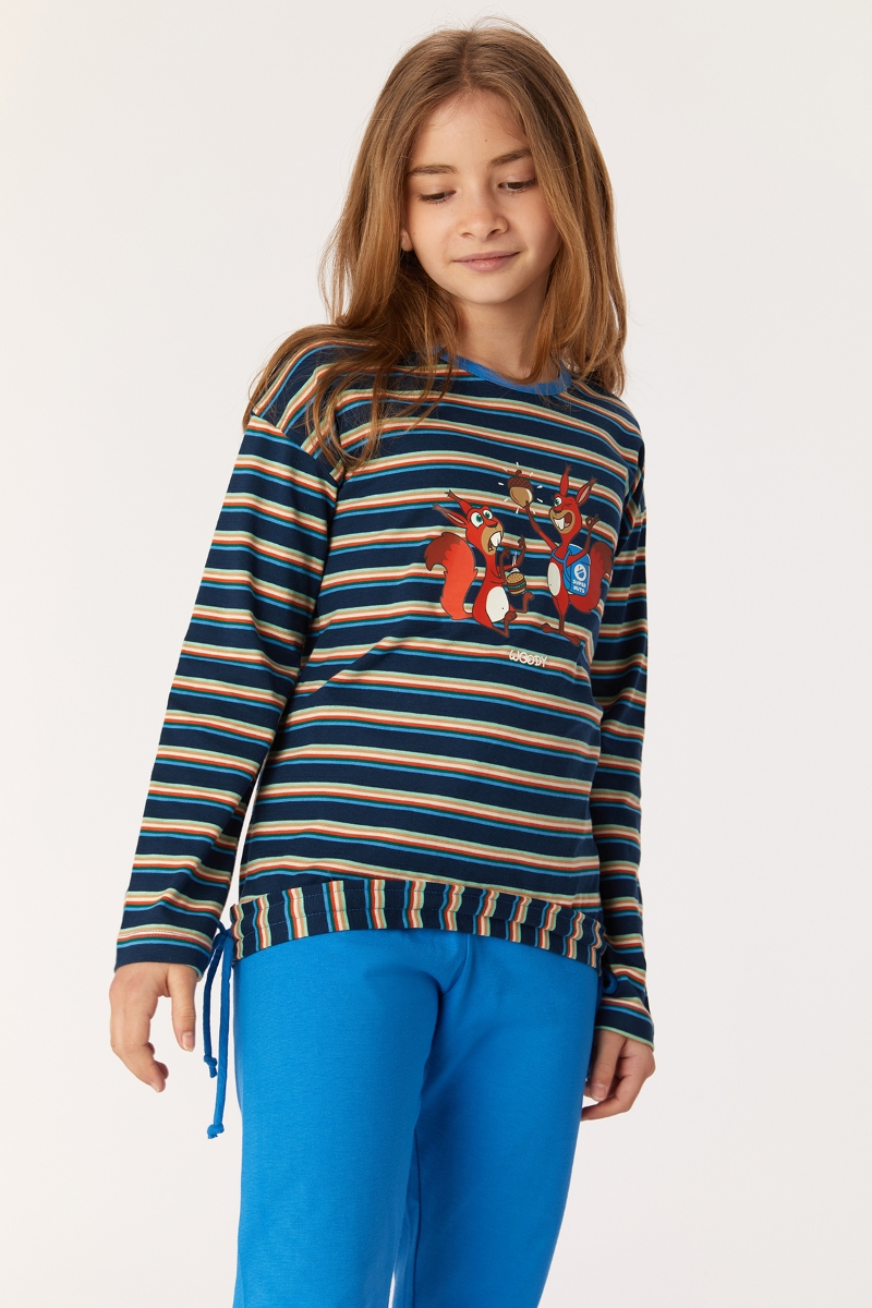 - 10-16 Yaş Kız Çocuk Pijama-Bsl - 911-Sincap Temalı Çok Renkli Lacivert