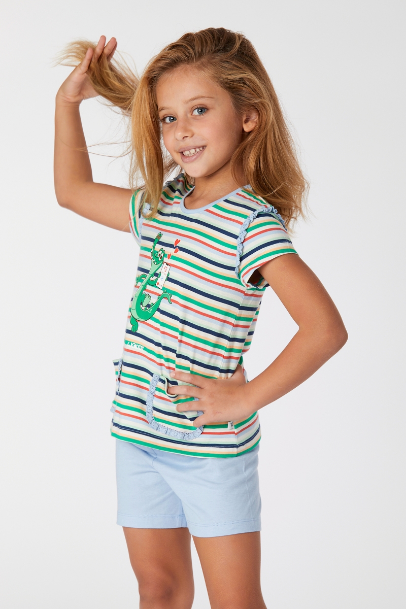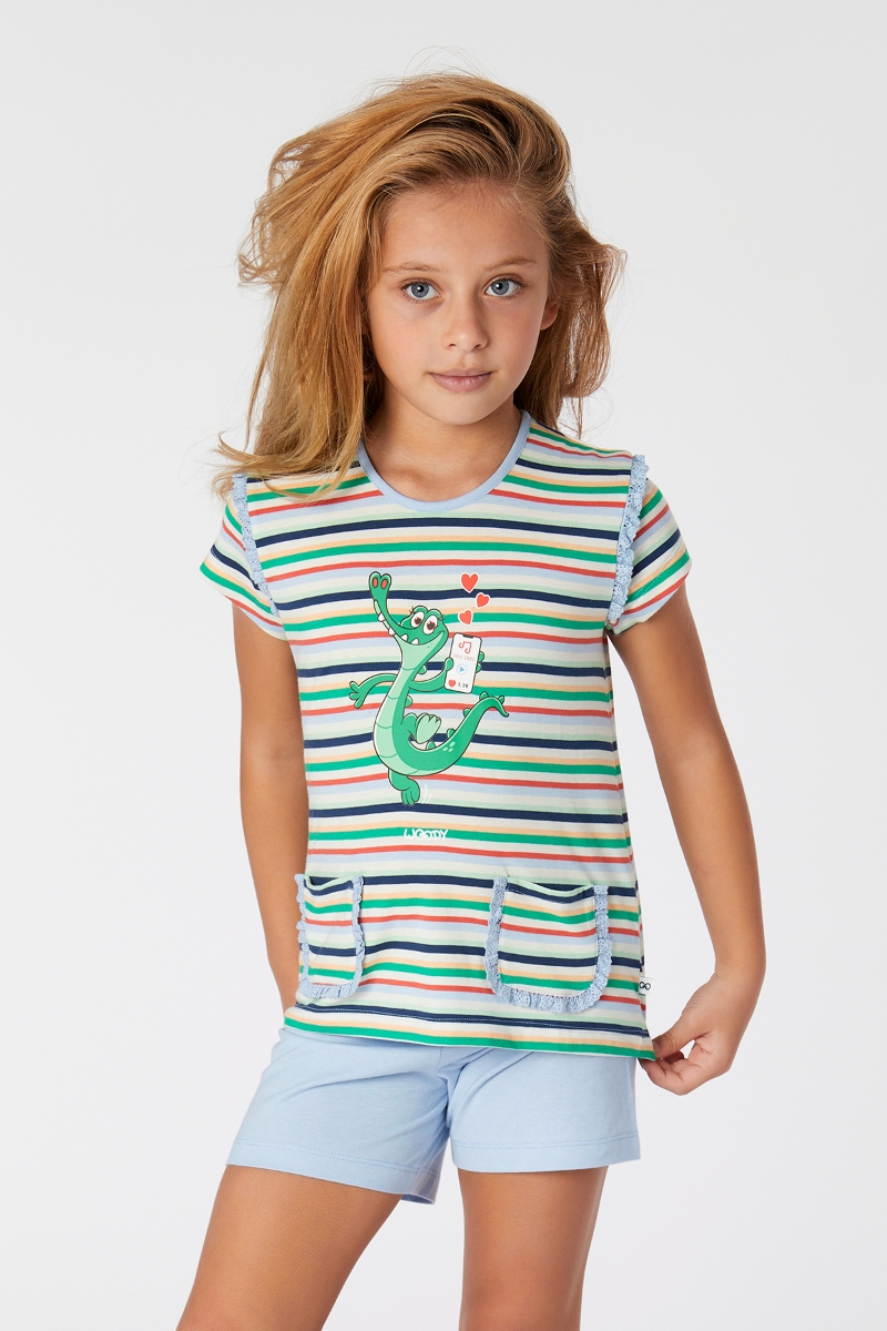 - 10-16 Yaş Kız Çocuk Pijama-Psg - 910-Krokodil Temalı Çizgili Yeşil