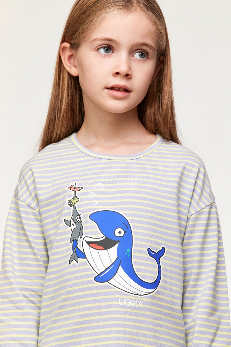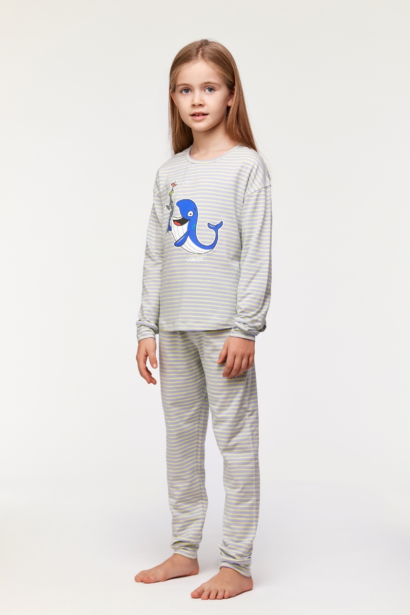 - 10-16 Yaş Kız Çocuk Pijama-Pzb - 916-Balina Temalı Çizgili Mavi
