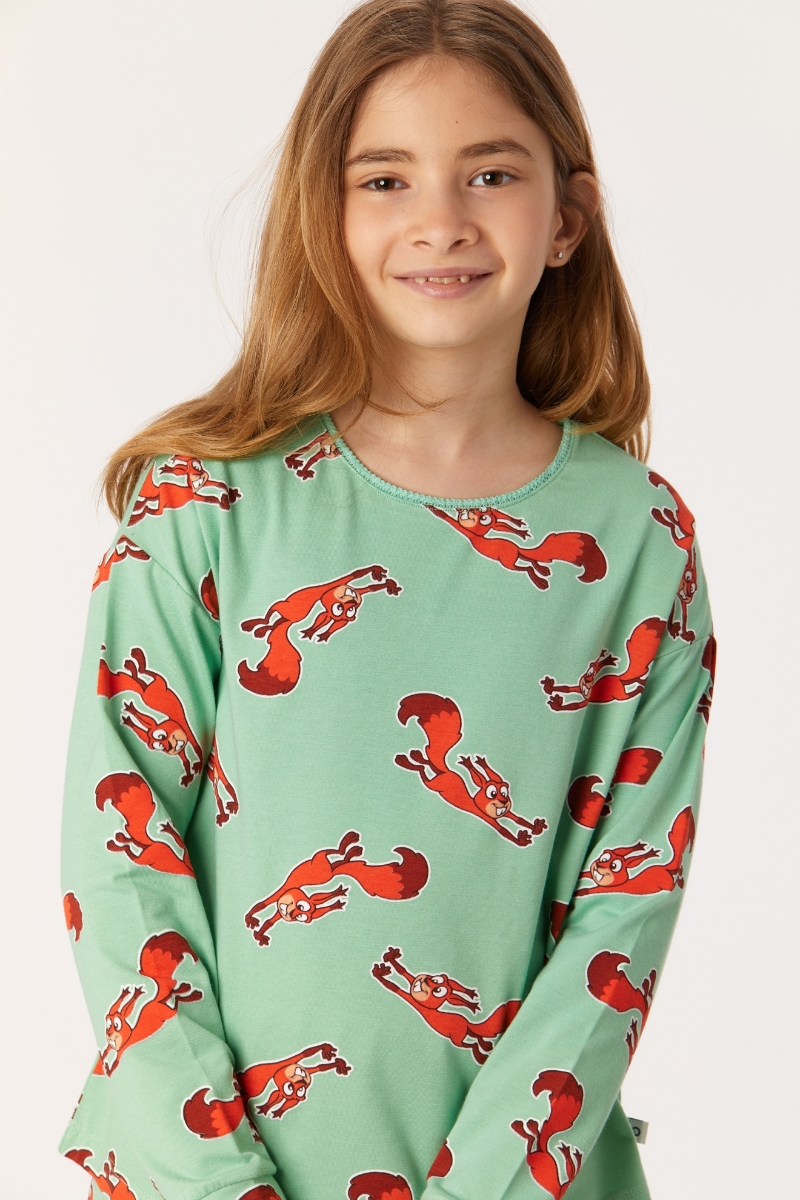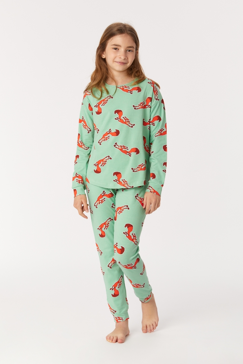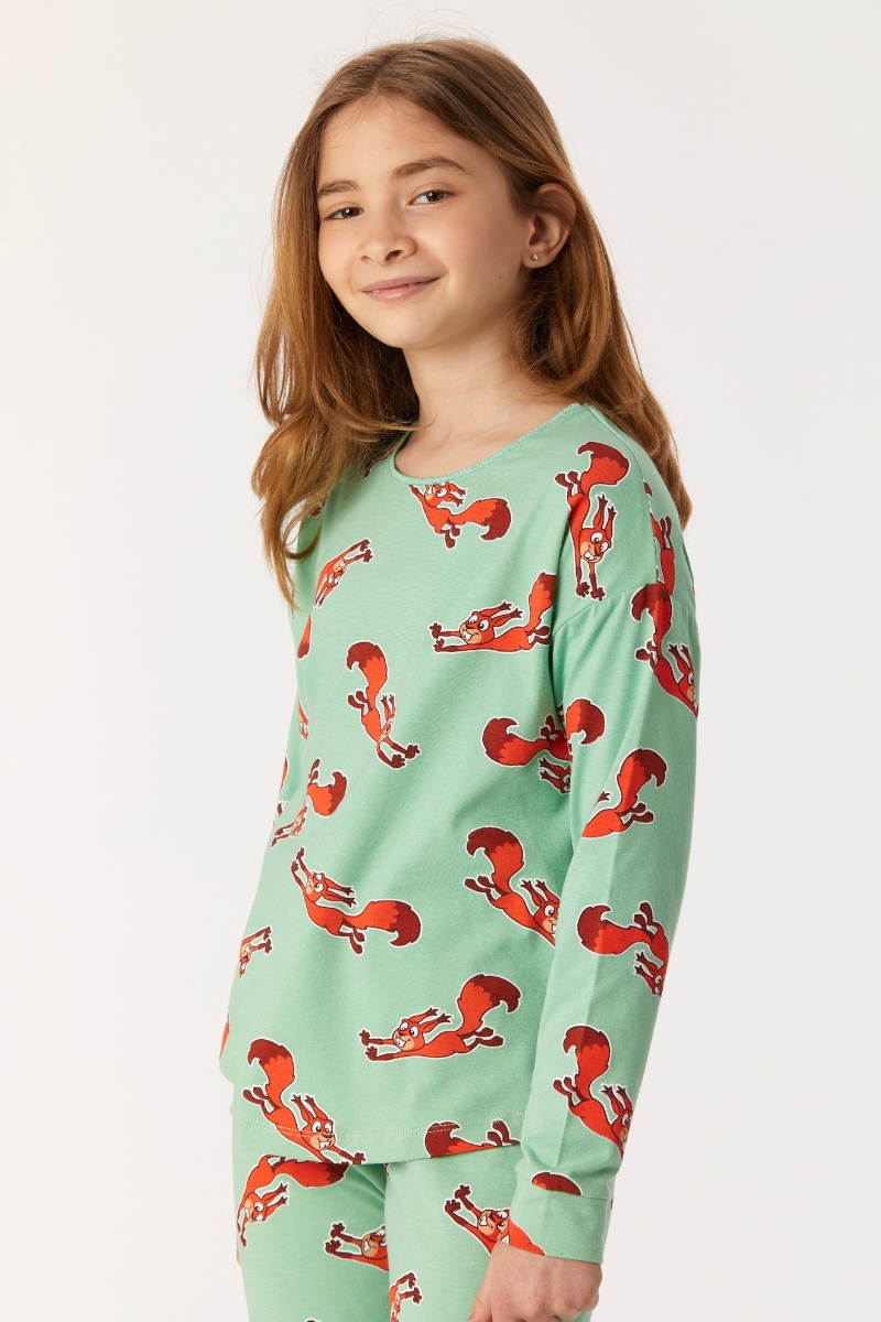 - 10-16 Yaş Kız Çocuk Pijama-Pzg - 912-Sincap Baskılı Yeşil