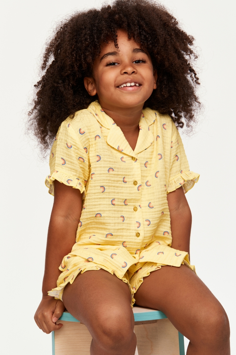 - 10-16 Yaş Kız Çocuk Pijama-Wpj - 940-Gökkuşağı Baskılı Sarı