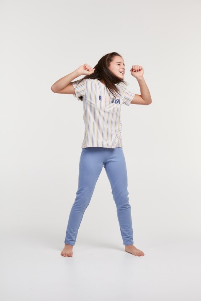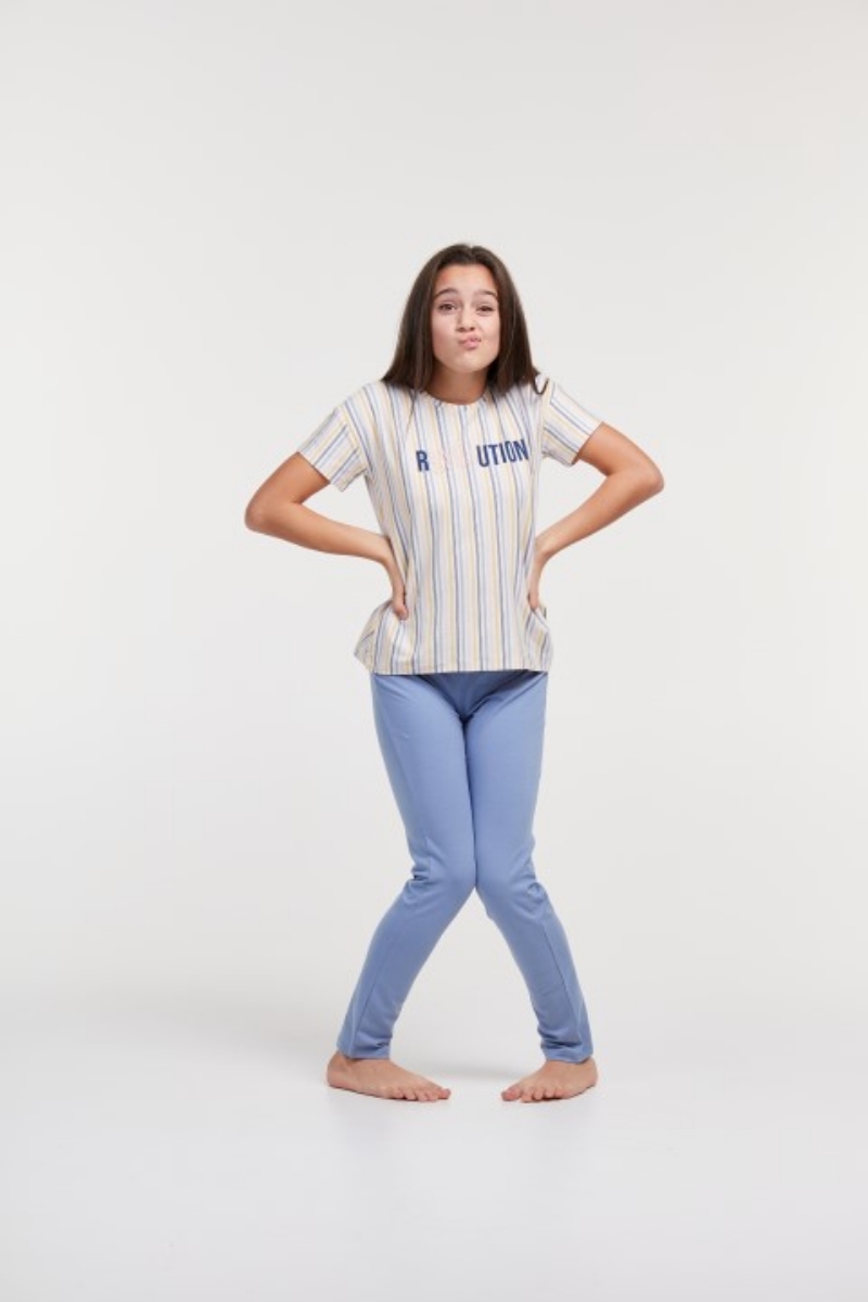 - 10-16 Yaş Kız Çocuk Pijama-Ypa - 911-Gine Domuzu Çizgili Ekru