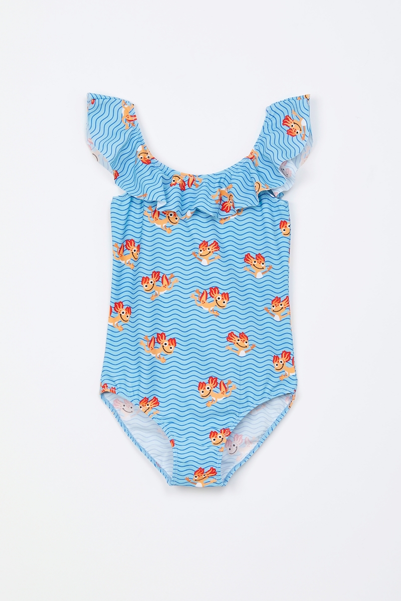 - 10-16 Yaş Kız Çocuk UPF50+ Korumalı Mayo-Zwb - 922-Semender Baskılı Mavi Çizgili