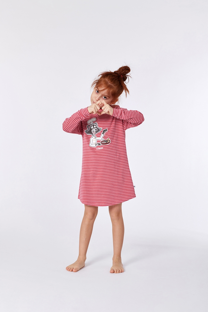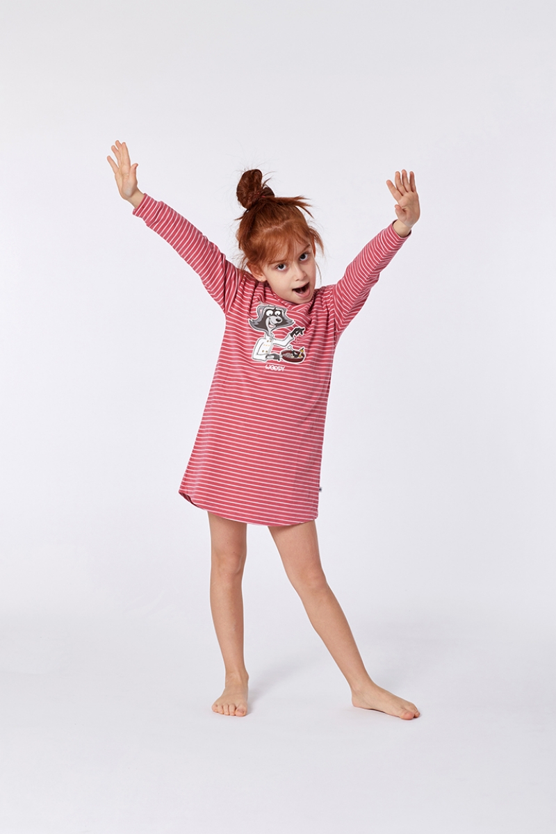 - 10-16 Yaş Kız Çocuk Gecelik-Dzf - 923-Rakun Temalı Çizgili Kırmızı