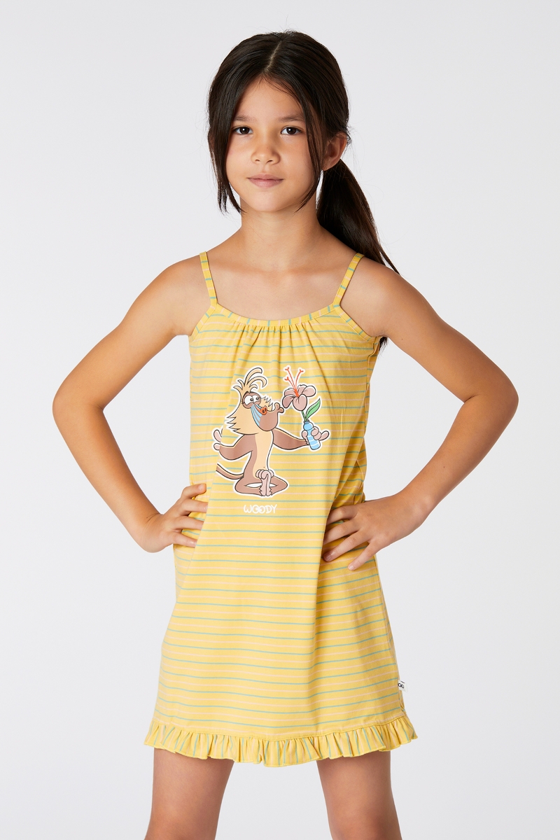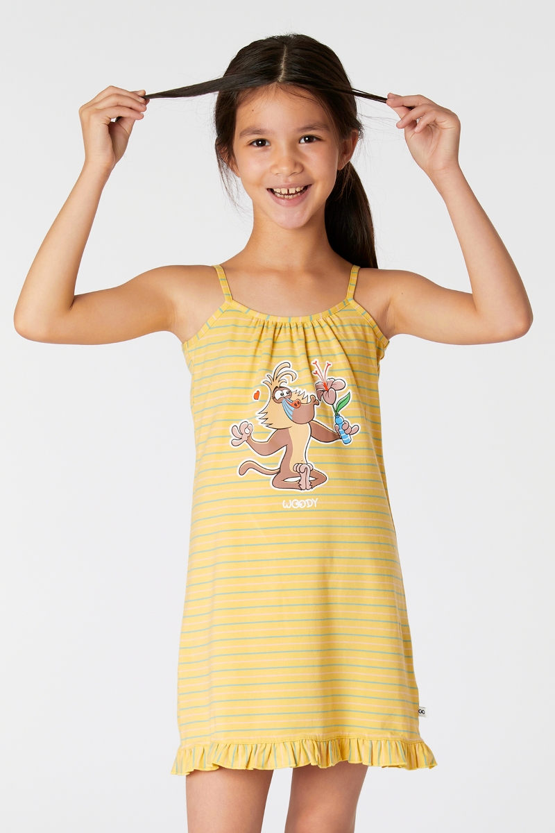 - 2-8 Kız Çocuk Gecelik-Dzb - 964-Mandril Temalı Çizgili Sarı