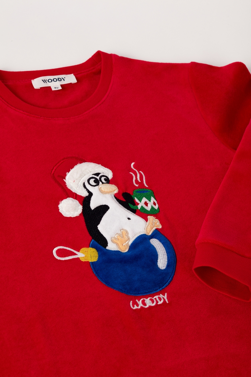 - 2-8 Yaş Erkek Çocuk Kadife Pijama-Cpa - 407-Yeni Yıl Kırmızısı