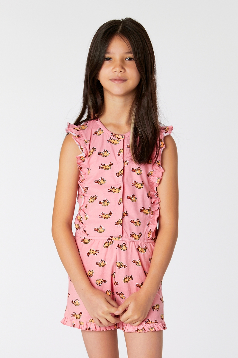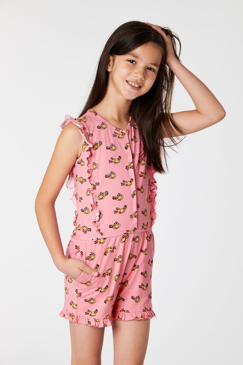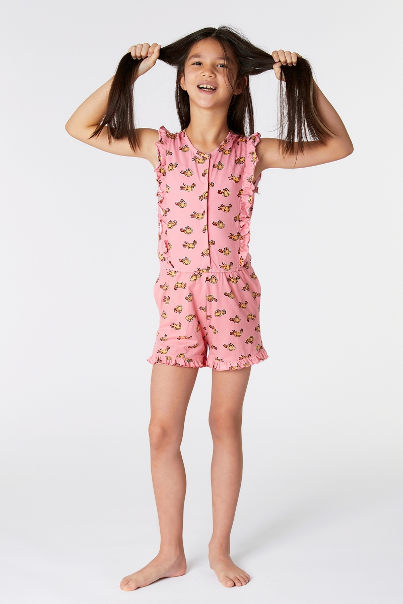 2-8 Yaş Kız Çocuk Pamuklu Tulum-Ond - 944-Semender Baskılı Pembe