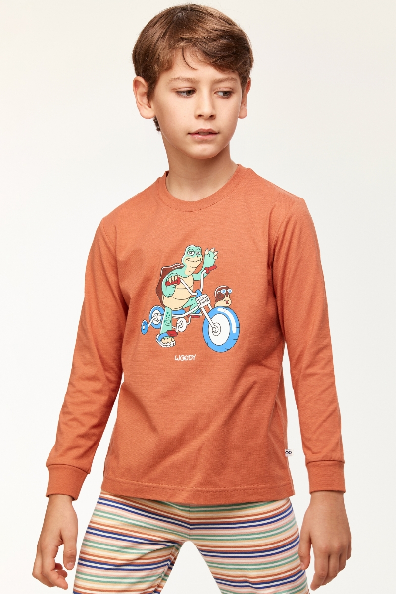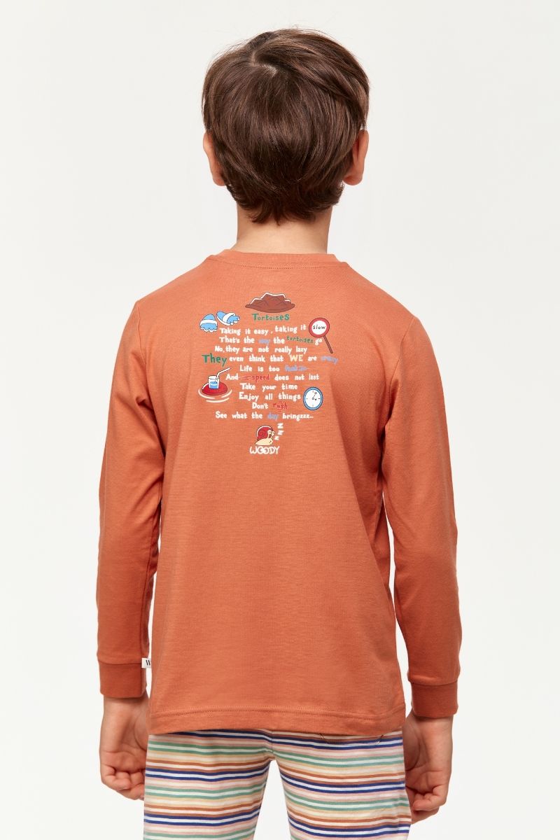 - 2-8 Yaş Erkek Çocuk Pijama-Plc - 202-Yanık Turuncu