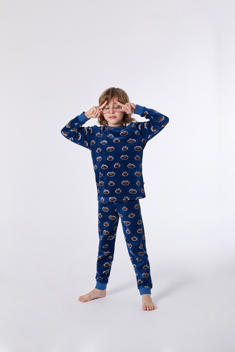 - 2-8 Yaş Erkek Çocuk Pijama-Plc - 928-Rakun Baskılı Koyu Mavi