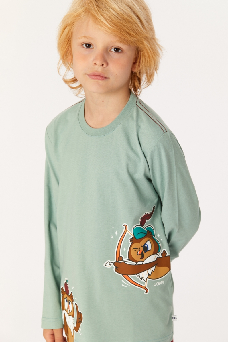 - 2-8 Yaş Erkek Çocuk Pijama-Plu - 806-Deniz Yeşili