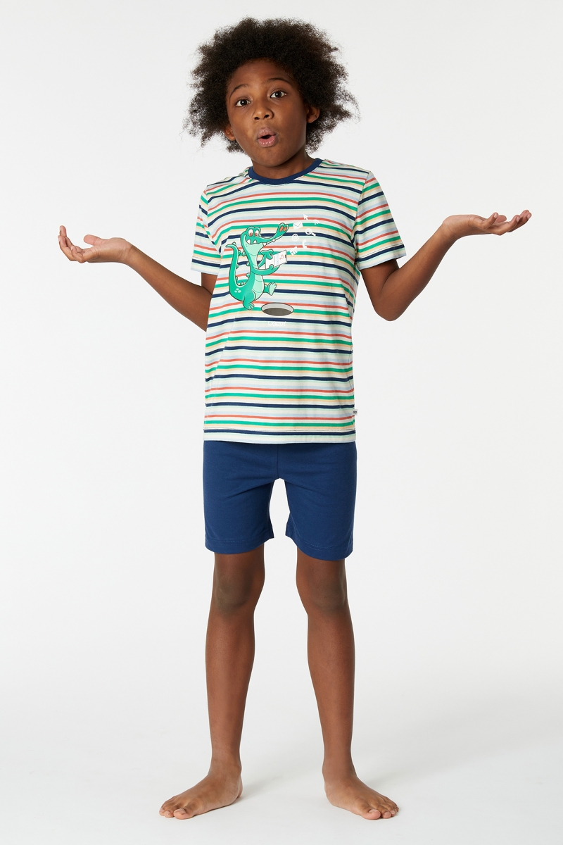 - 2-8 Yaş Erkek Çocuk Pijama-Pss - 910-Krokodil Temalı Çizgili Yeşil