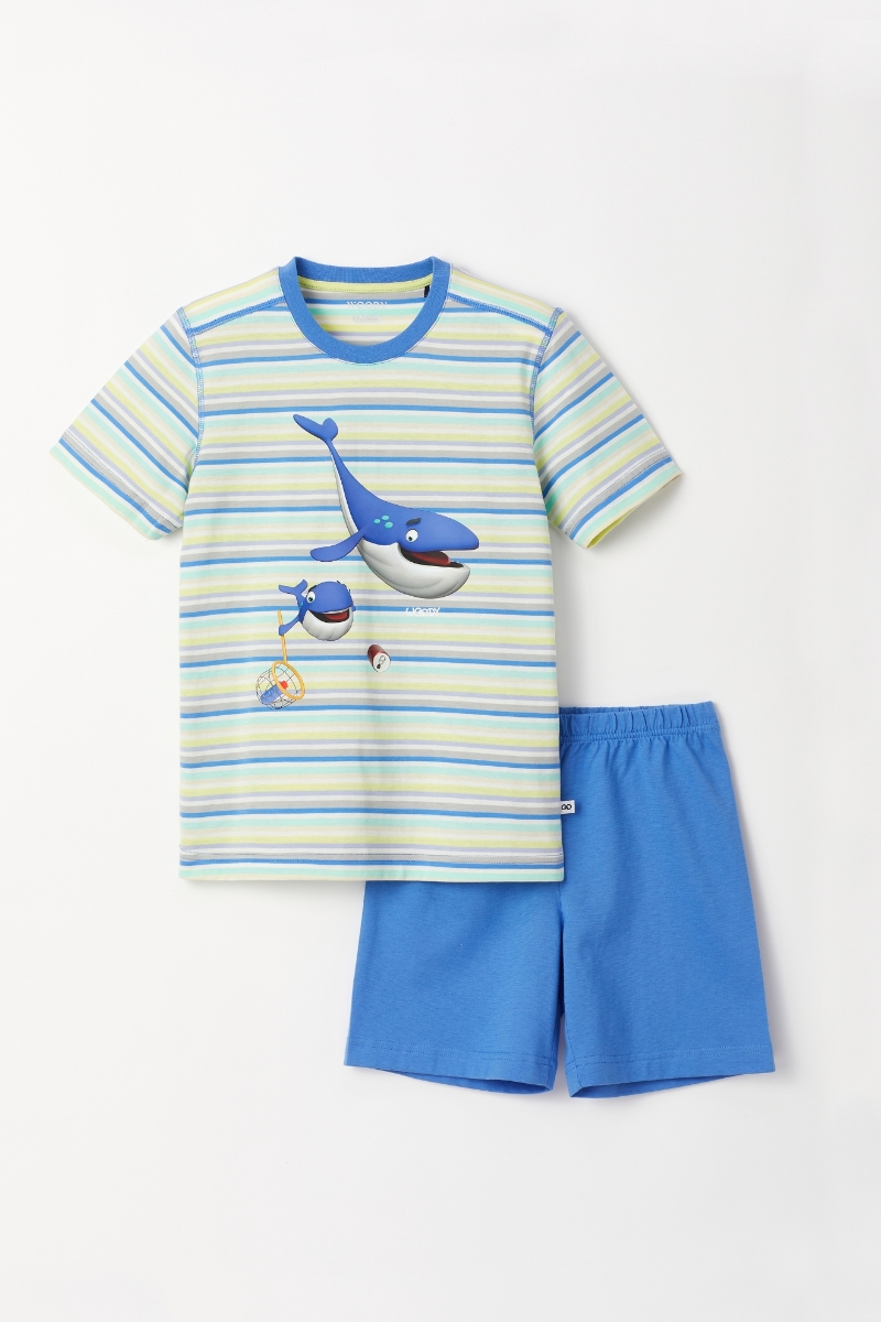 - 2-8 Yaş Erkek Çocuk Pijama-Pus - 904-Balina Temalı Çizgili Mavi