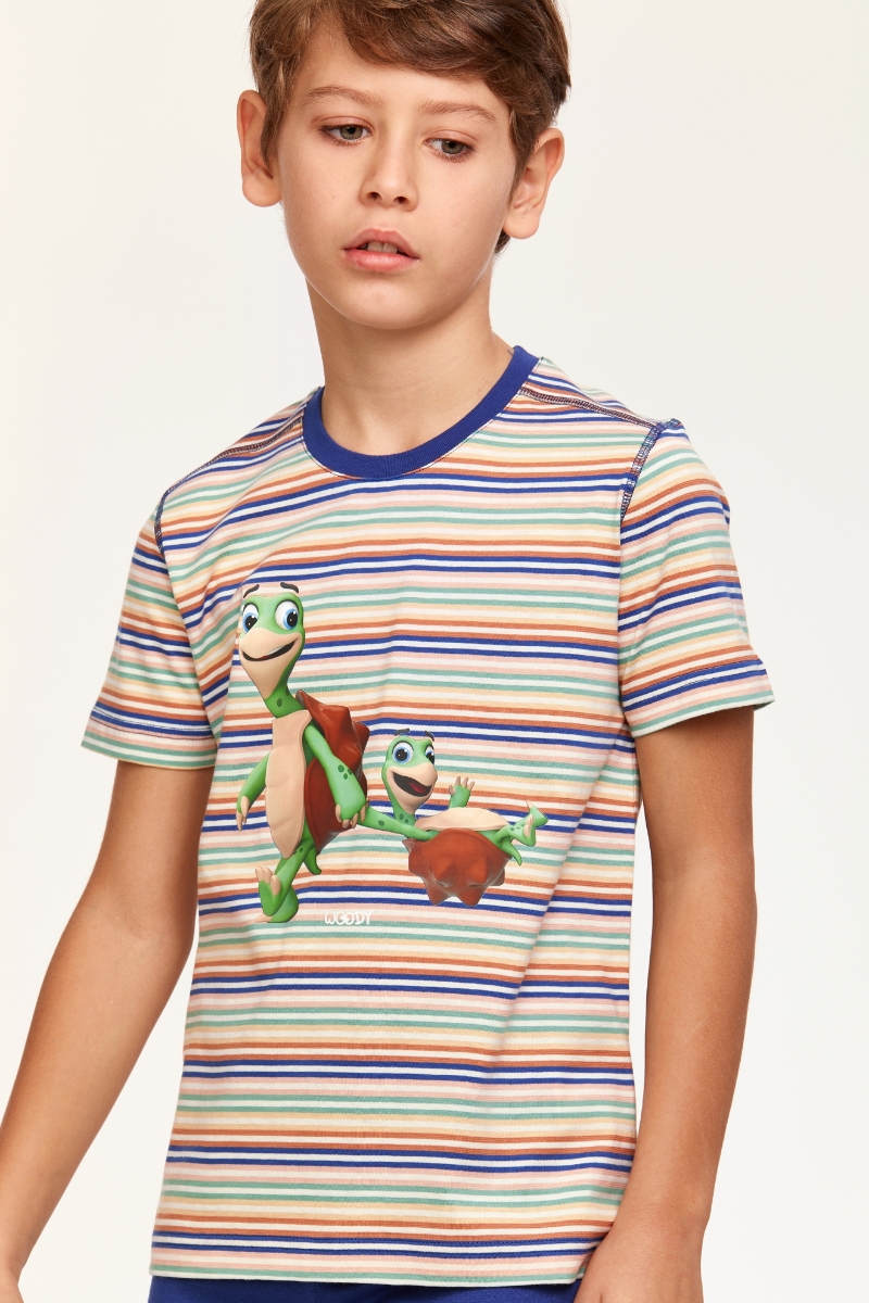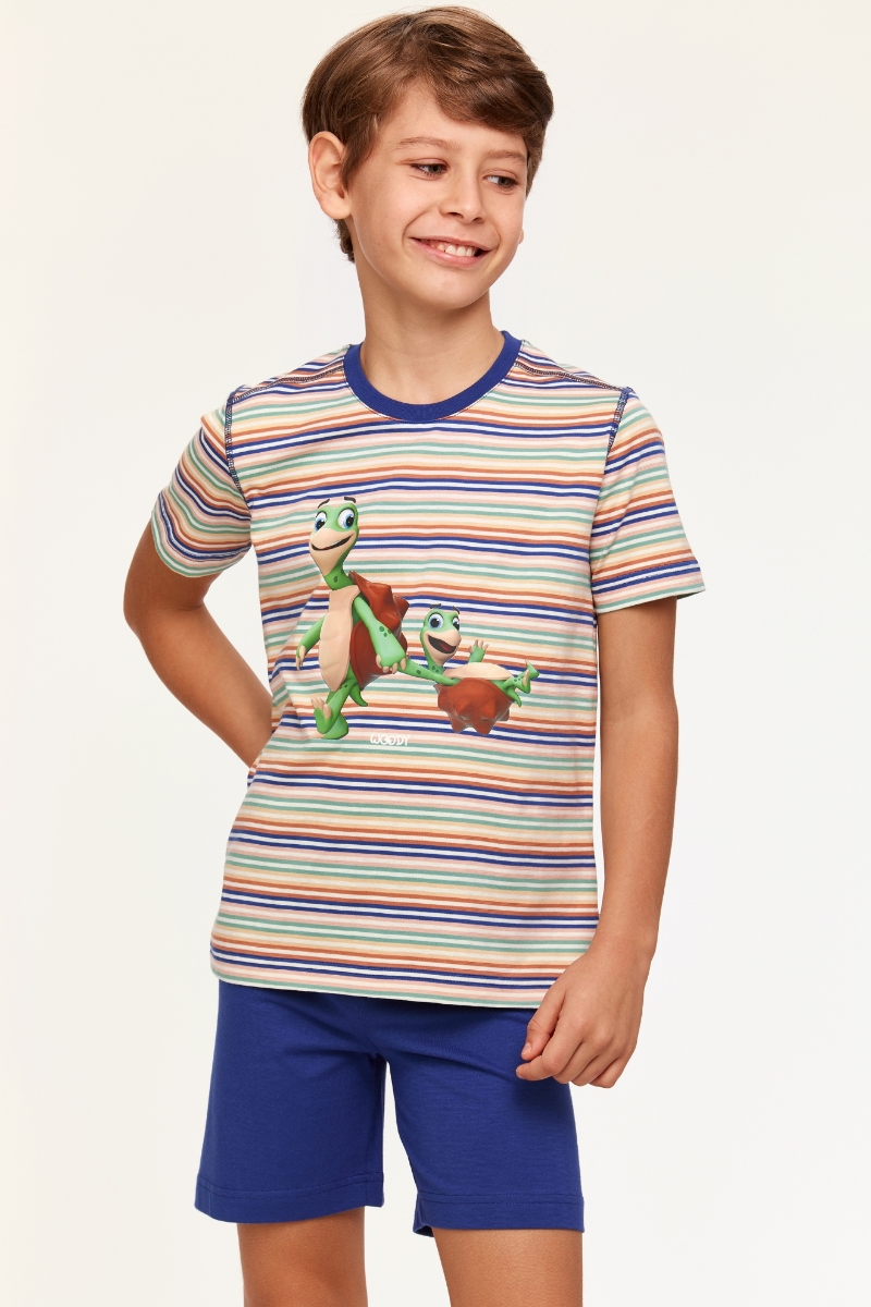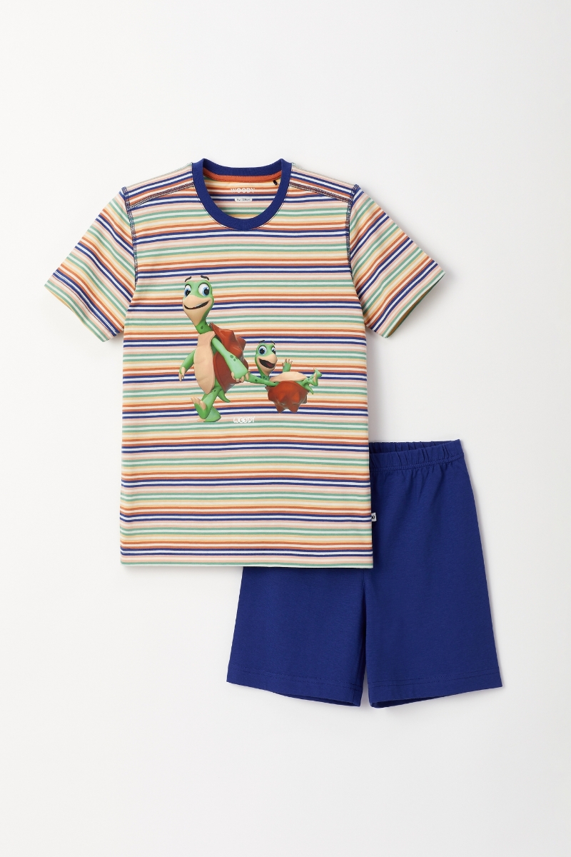 - 2-8 Yaş Erkek Çocuk Pijama-Pus - 906-Kaplumbağa Temalı Çizgili Turuncu