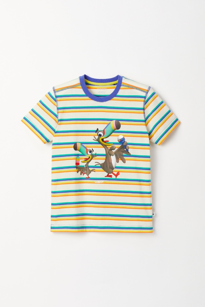 - 2-8 Yaş Erkek Çocuk Pijama-Pus - 908-Tukan Temalı Çizgili Mavi