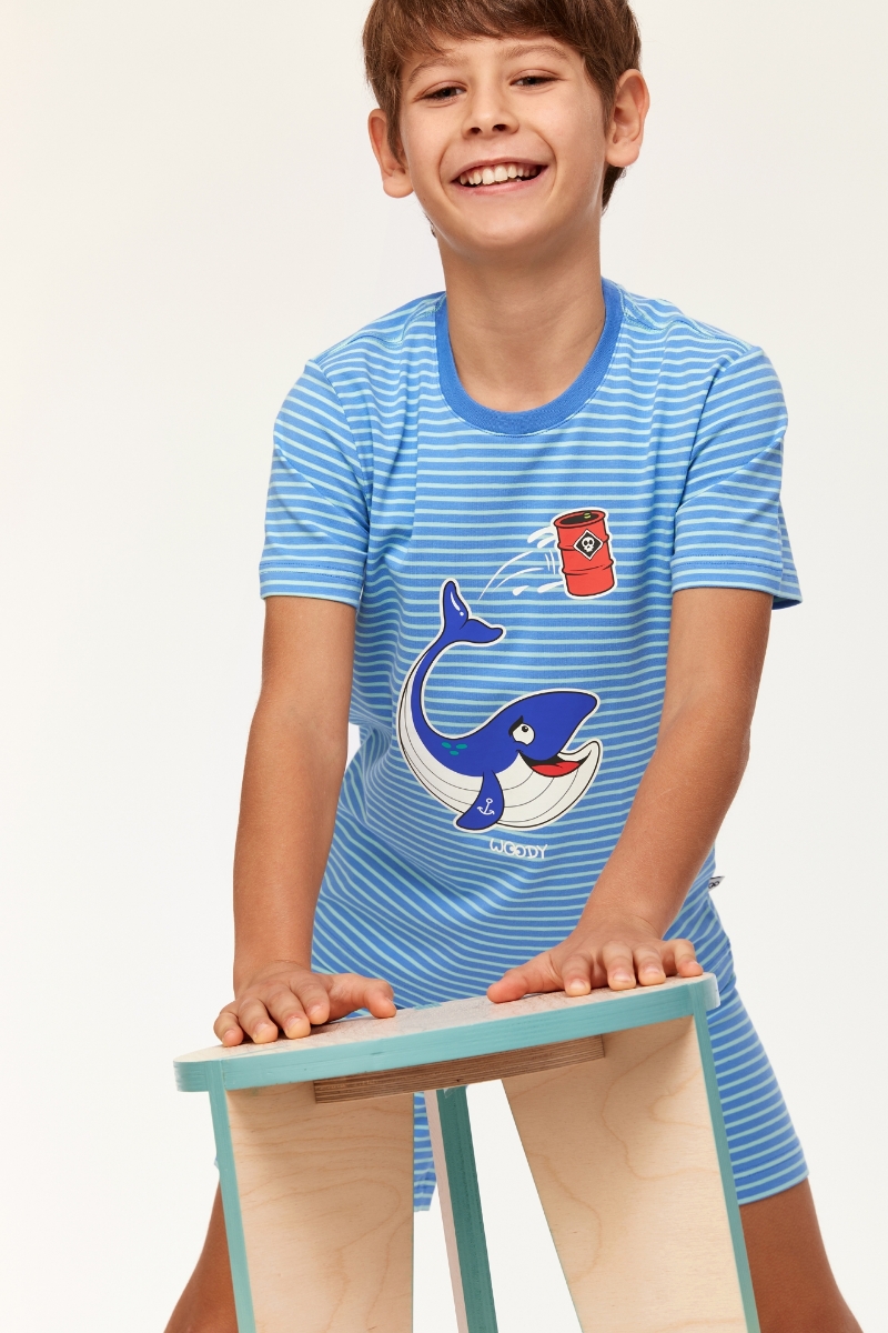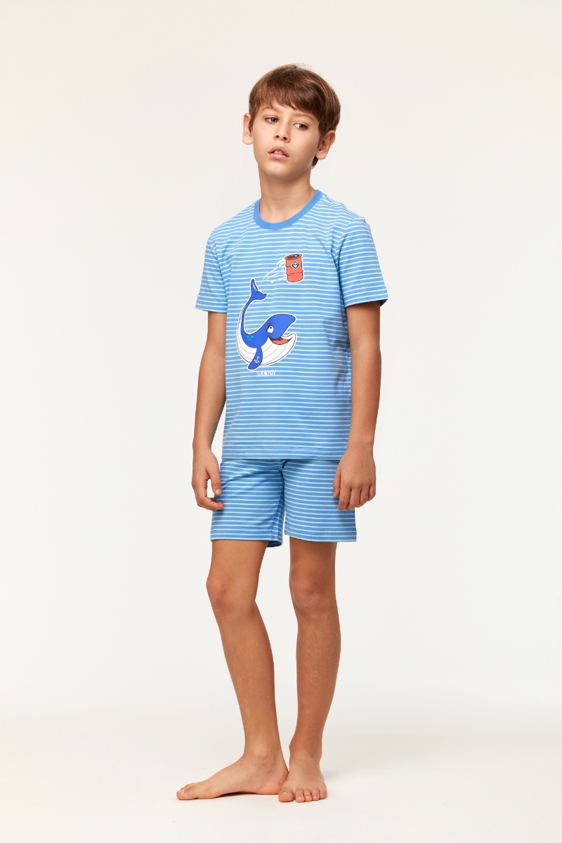 - 2-8 Yaş Erkek Çocuk Pijama-Pza - 913-Balina Temalı Çizgili Mavi
