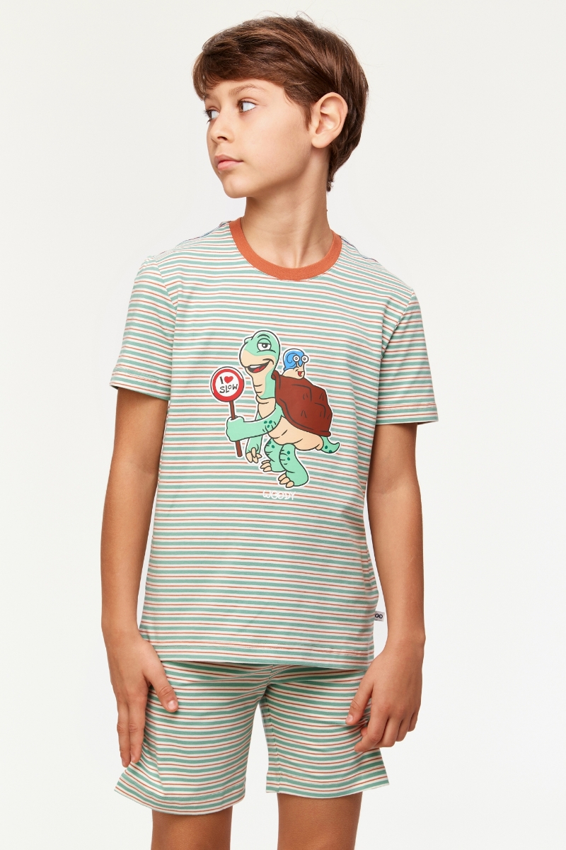 - 2-8 Yaş Erkek Çocuk Pijama-Pza - 914-Kaplumbağa Temalı Çizgili Turuncu