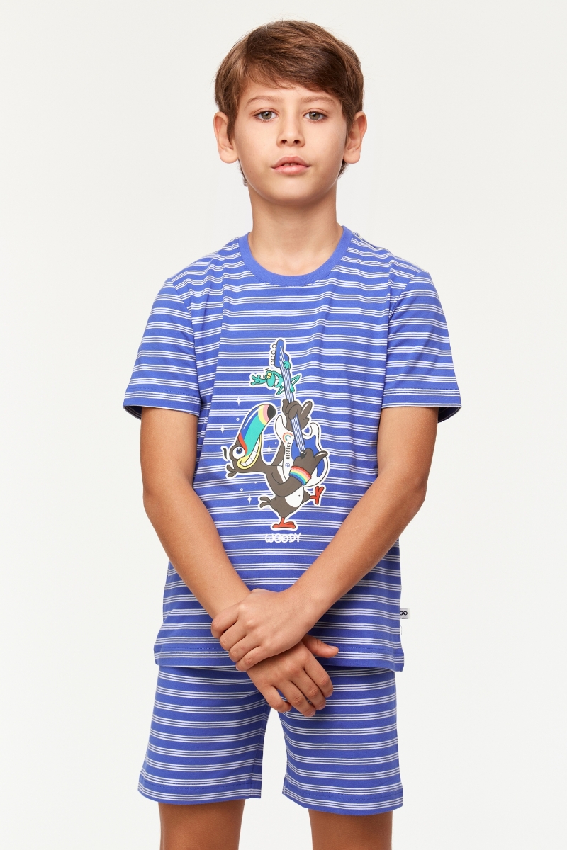 - 2-8 Yaş Erkek Çocuk Pijama-Pza - 915-Tukan Temalı Çizgili Ekru
