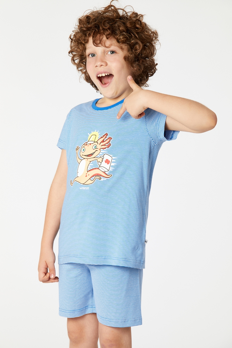 - 2-8 Yaş Erkek Çocuk Pijama-Pza - 980-Semender Temalı Çizgili Beyaz