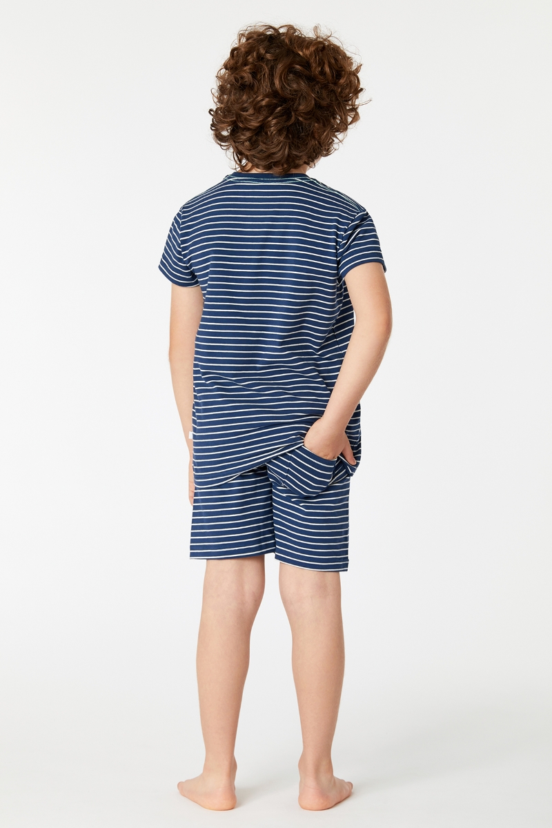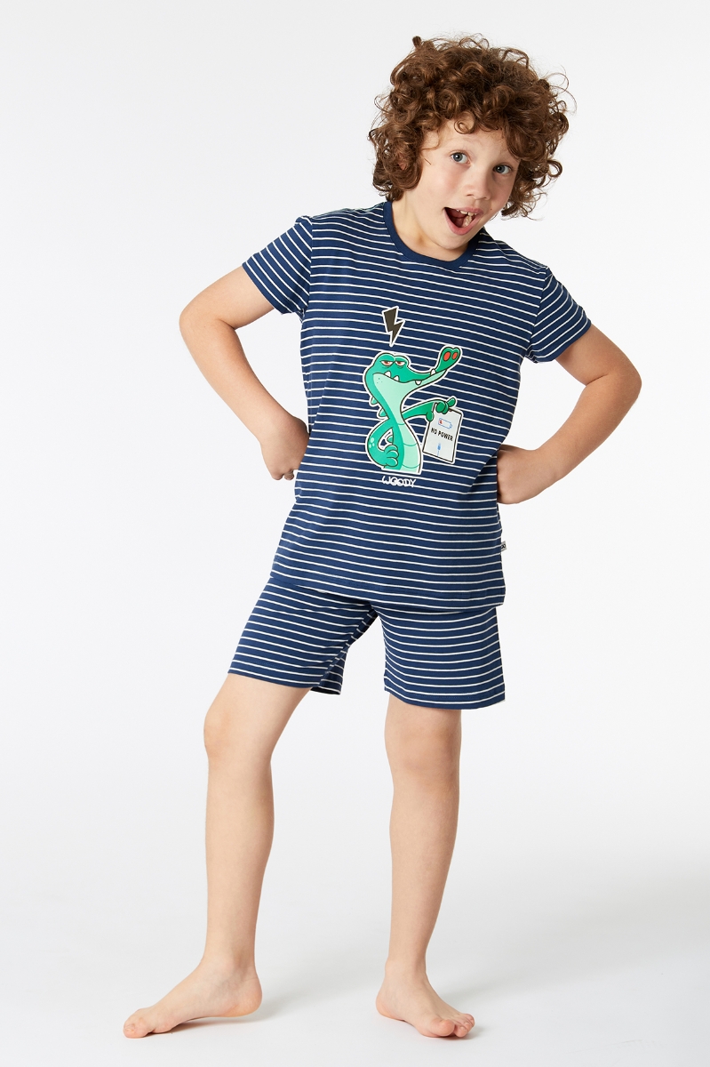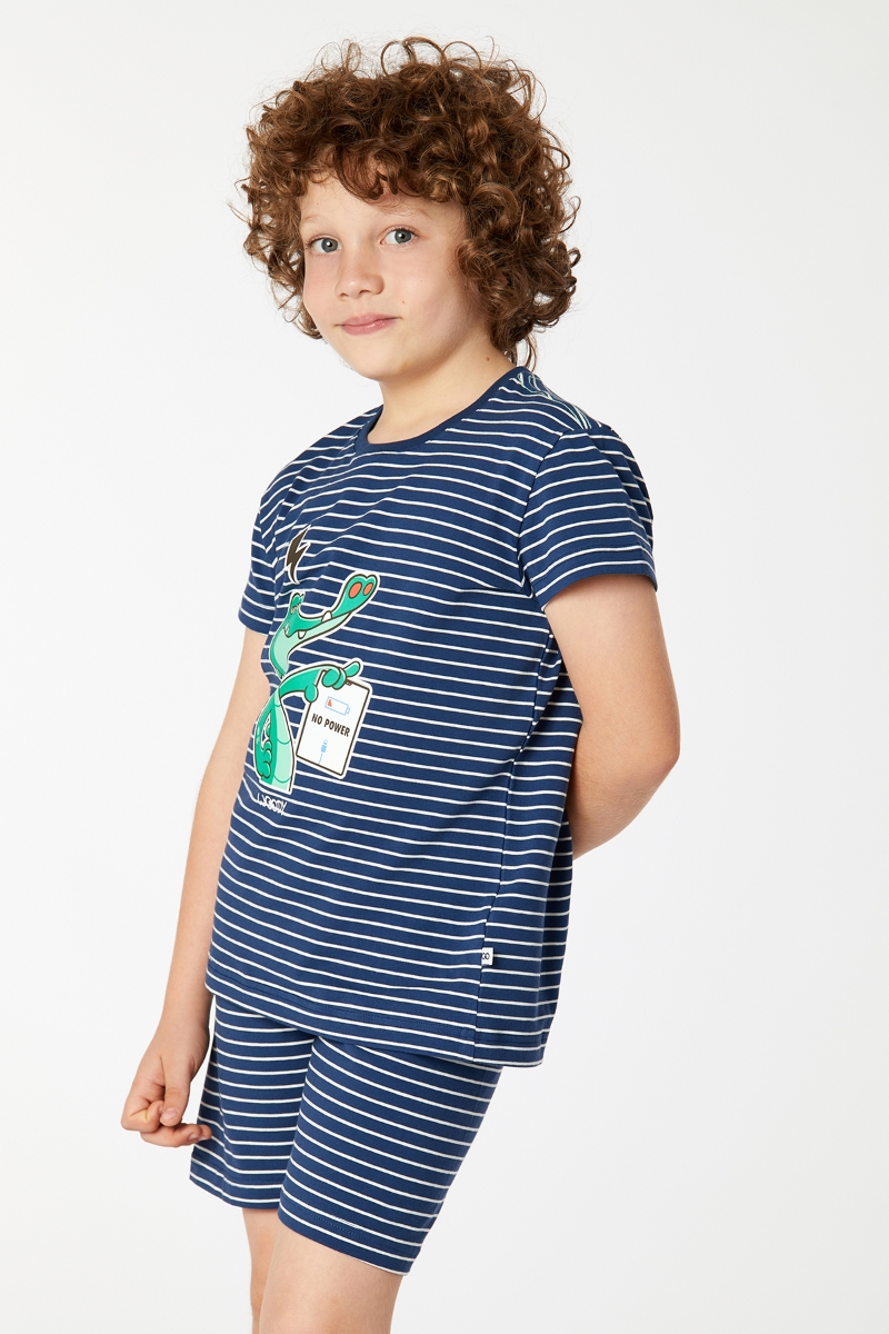 - 2-8 Yaş Erkek Çocuk Pijama-Pza - 981-Krokodil Temalı Lacivert Çizgili